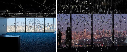 都市の運動から抜け出し「ただ、眺める」。をテーマに、これまで展示空間と観客を含めた状況をつくることで空間を変容させ、現実の不確かさをひとびとに体験させてきた現代アートチーム「目 [me]」の企画展を開催。作家の観点と非日常から世界を眺めることを可能にするSHIBUYA SKYの視座を重ねることで、都市は一つの大きな運動体でありながら、その運動を担う私たちはそれぞれの固有の時を歩んでいるという世界の姿をただ、眺めることを促しました。