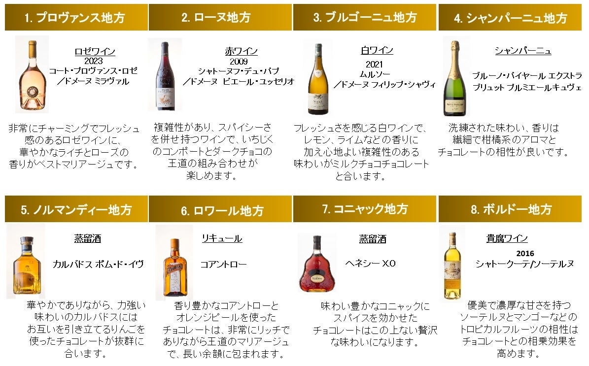 ●フランスの8つの地域の伝統的なお酒を使ったスペシャルなショコラをご用意しました。