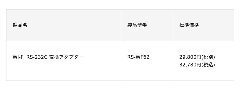 Wi-Fi接続でRS-232C機器と通信できるRS-232Cアダプター 12月下旬発売