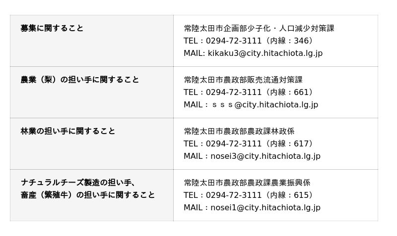 - 農業(梨)の担い手:1名- 林業の担い手:1名