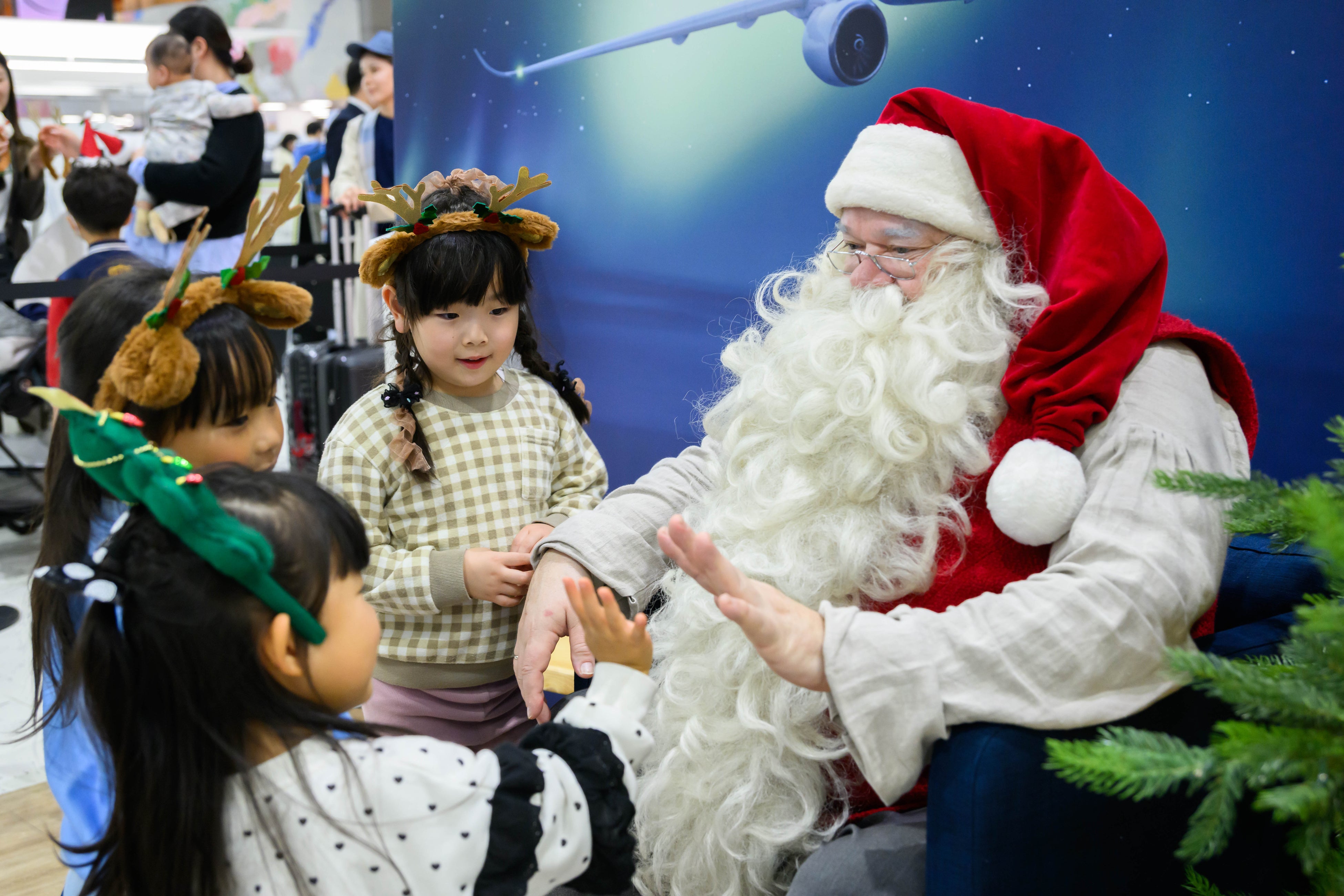 11月28日(金)、トナカイがひくソリではなく、フィンランドと日本を結ぶ直行便AY073便で成田空港に到着したサンタクロースは、「1年で最も忙しい時期を前に、トナカイを休ませてあげなくてはならないので、今日は、フィンエアーで来たんだよ」と語り、笑いを誘いました。その後、成田空港内、特設ブースで開催したミート&グリートでは、サンタクロースを心待ちにしていた人々と記念撮影を行い、笑顔と幸せを届けました。
