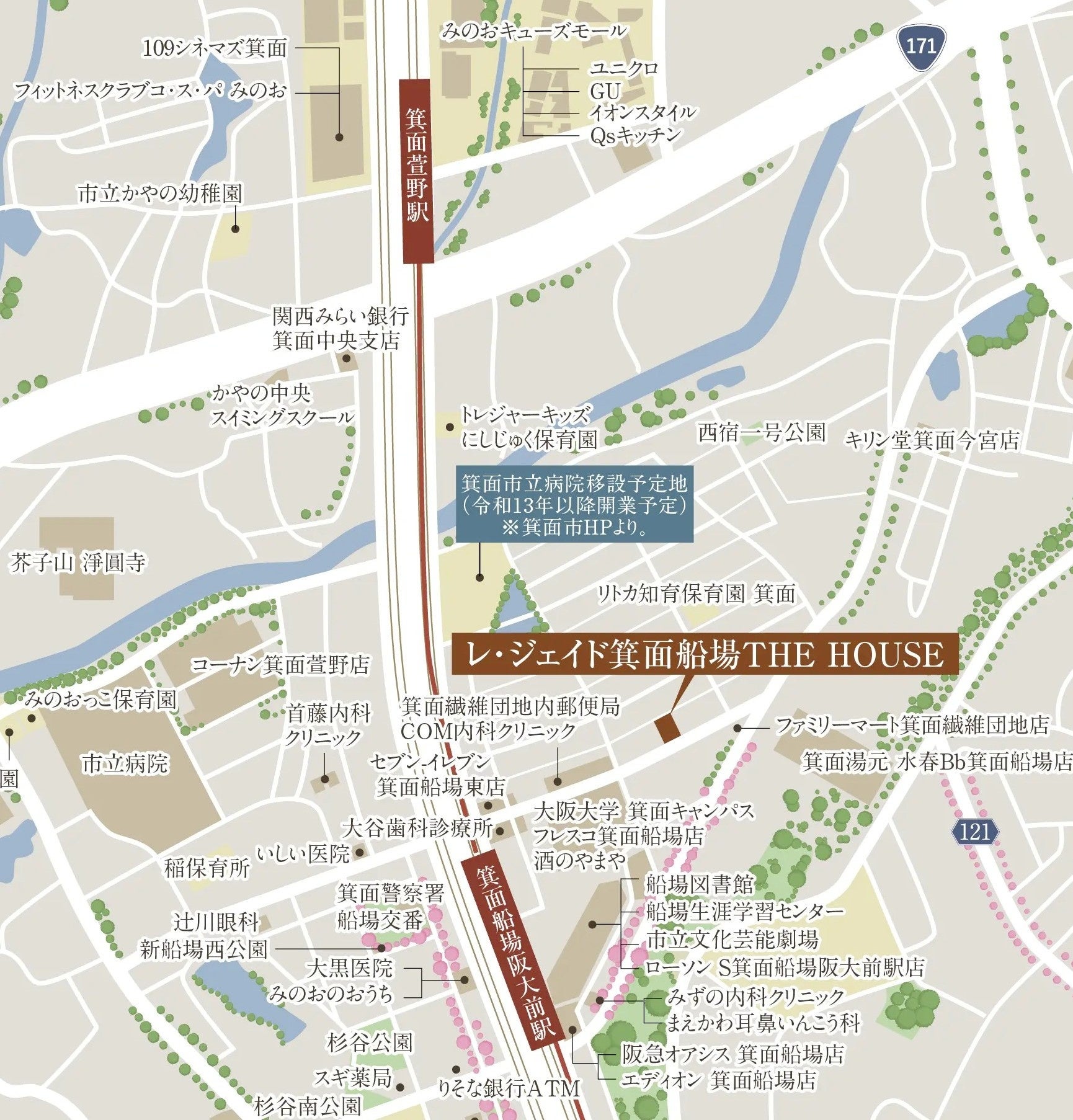 物件名称:レ・ジェイド箕面船場 ザ・ハウス所在地:大阪府箕面市船場東2丁目7-10(地番)