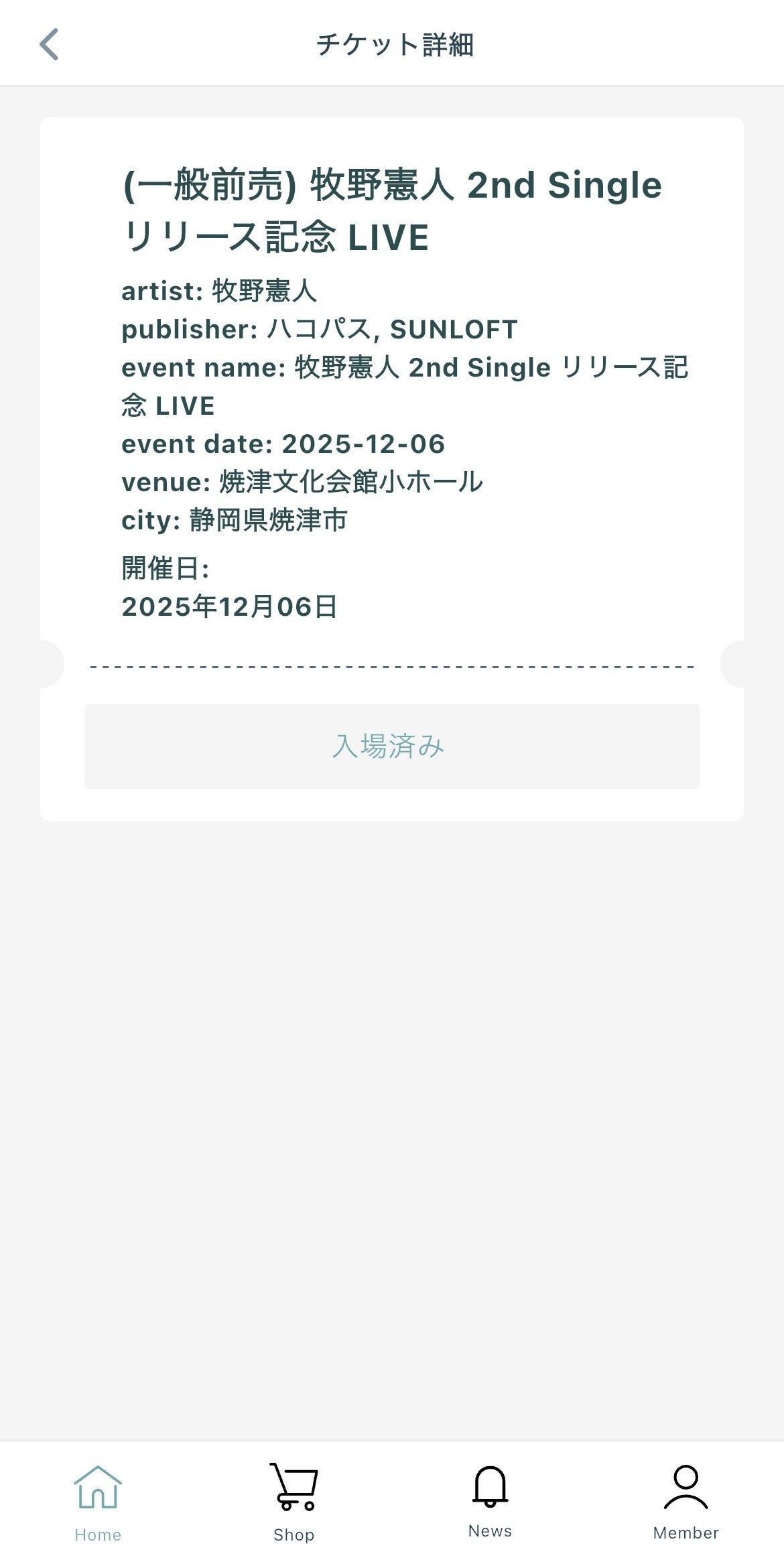 ハコパスは、牧野憲人さんの2nd Singleリリース記念LIVEで初めて採用されます。牧野さんは焼津市役所に勤務しながら音楽活動を続け、地域を中心に支持を得ているアーティストです。地域で活動するアーティストとファンの距離が近いライブのため、来場証明を記念として残したり、ライブ後も特典を届けたりすることができるハコパスの特徴が活かされる場として、今回の導入が決まりました。