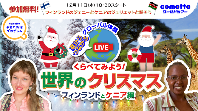 『comottoワールドツアー』クリスマス編「くらべてみよう!世界のクリスマス フィンランドとケニア編」・イベント開催日時