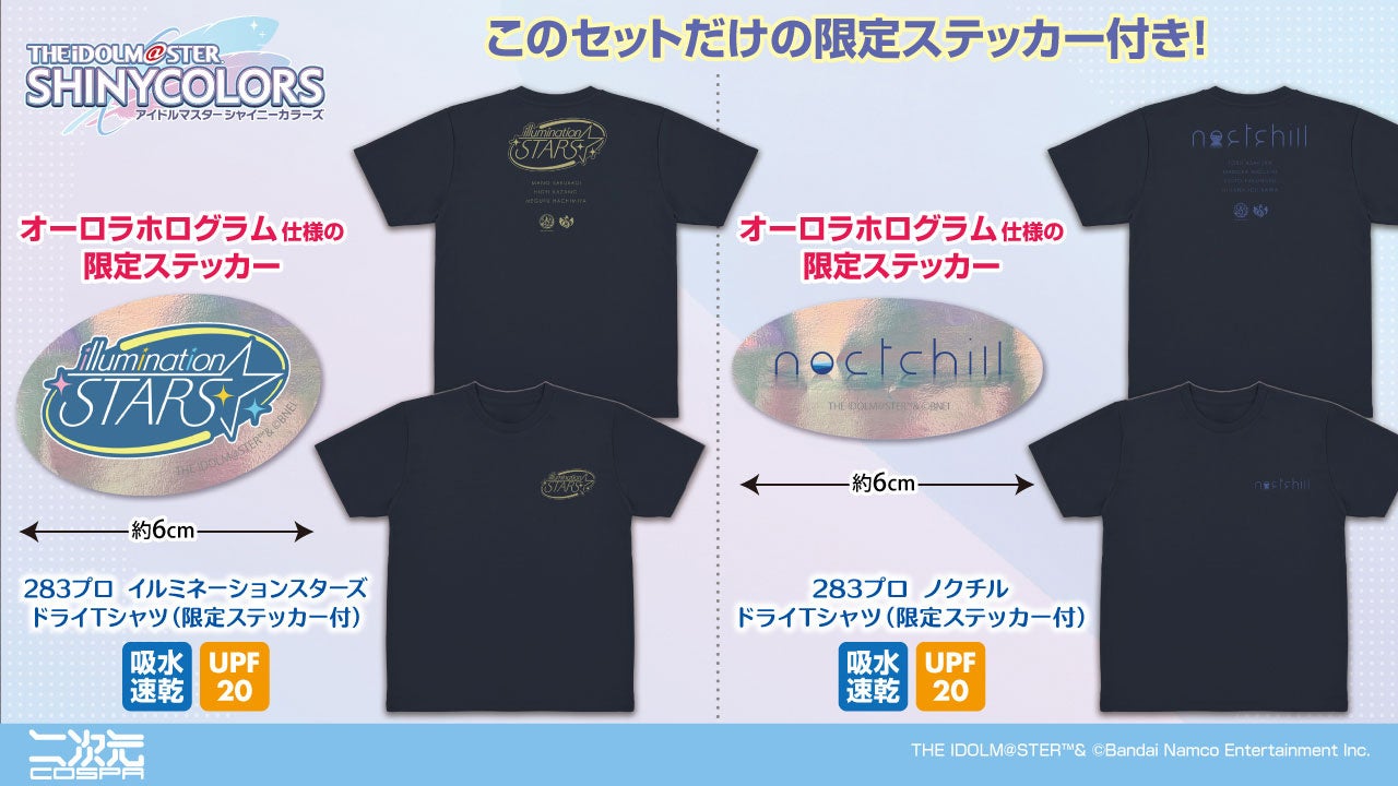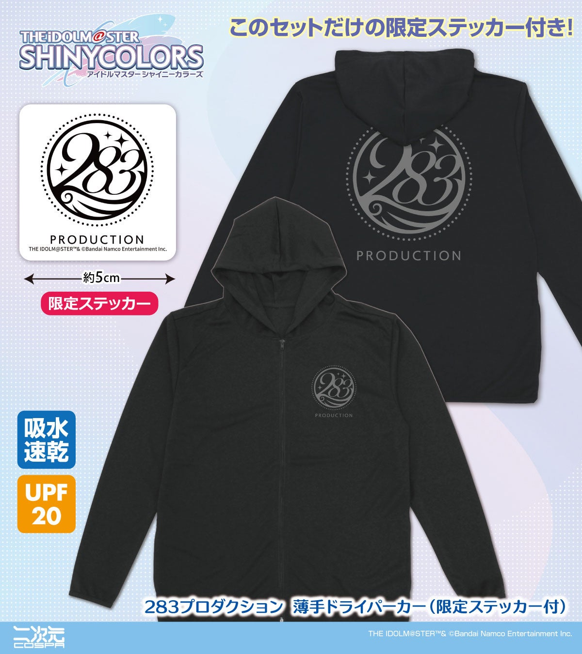 限定ステッカーが付いた「★限定★283プロダクション 薄手ドライパーカー(限定ステッカー付)」をはじめ、イルミネーションスターズ、ノクチル、アンティーカの「ドライTシャツ」など新グッズをどうぞお見逃しなく。