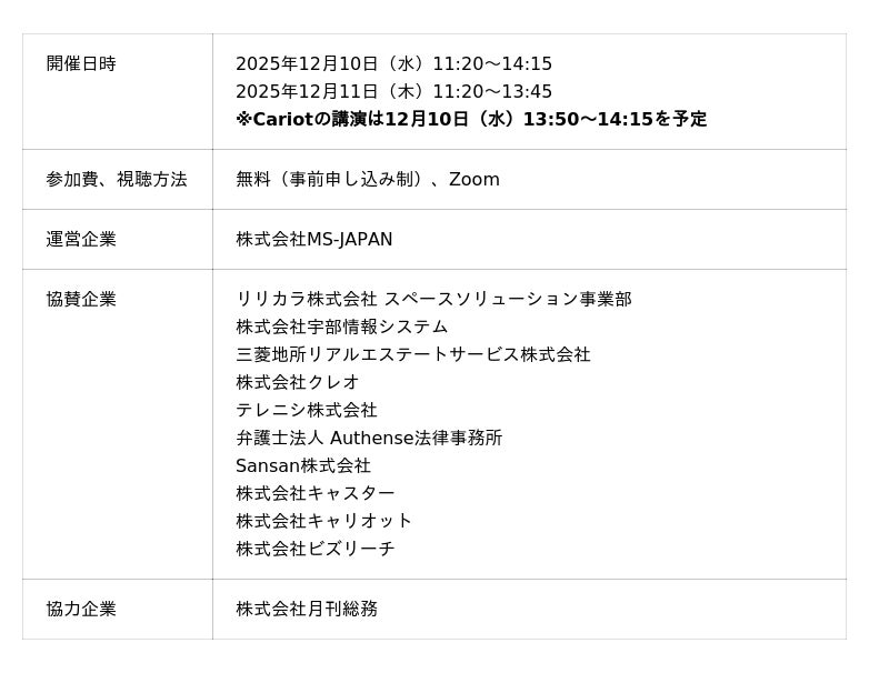 株式会社キャリオット(本社:東京都港区、代表取締役社長 齋藤 洋徳)は、株式会社MS-JAPAN(本社:東京都千代田区、代表取締役会長 CEO 有本 隆浩)が開催する、「強い総務のパートナー2026」に登壇することをお知らせします。