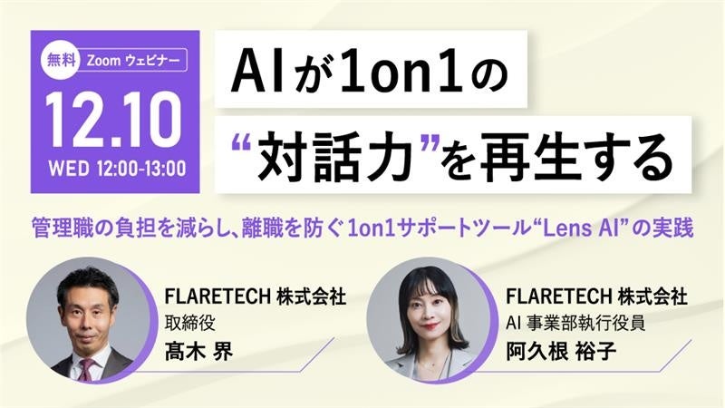 12月10日(水)、12月18日(木)の2日程開催!「AIを活用した1on1の質向上」と「AIエージェント時代の人事戦略」という2つのテーマから、最新の実践知と今後の展望をご紹介します。