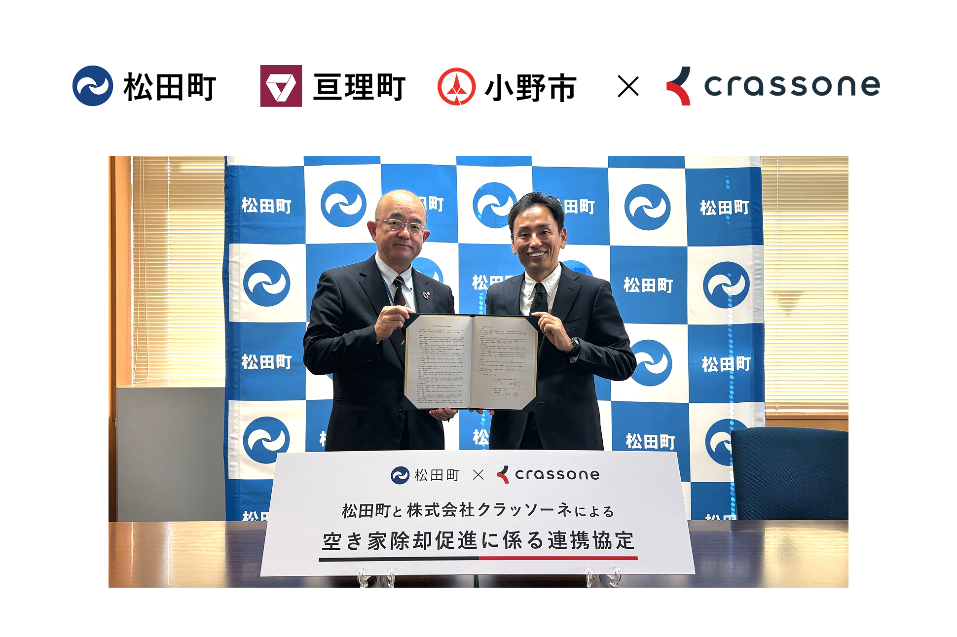 解体工事DXプラットフォーム「クラッソーネ」を運営する株式会社クラッソーネ(愛知県名古屋市、代表取締役CEO:川口 哲平、以下「当社」)は、神奈川県松田町(11月10日付、以下「松田町」)、宮城県亘理町(11月27日付、以下「亘理町」)、それぞれ「空き家除却促進に係る連携協定」を、兵庫県小野市(12月1日付、以下「小野市」)と「『街』の循環再生文化を育む連携協定」を締結しました。昨今、全国的にも社会課題となっている空き家問題への対策として、空き家除却を推進することで、安全安心なまちづくりを目指します。また本締結で、当社の自治体連携の実績は169自治体(行政運営の団体含む)、全国での人口カバー率は約19.5%、兵庫県内での人口カバー率は49.8%となりました(※1)。