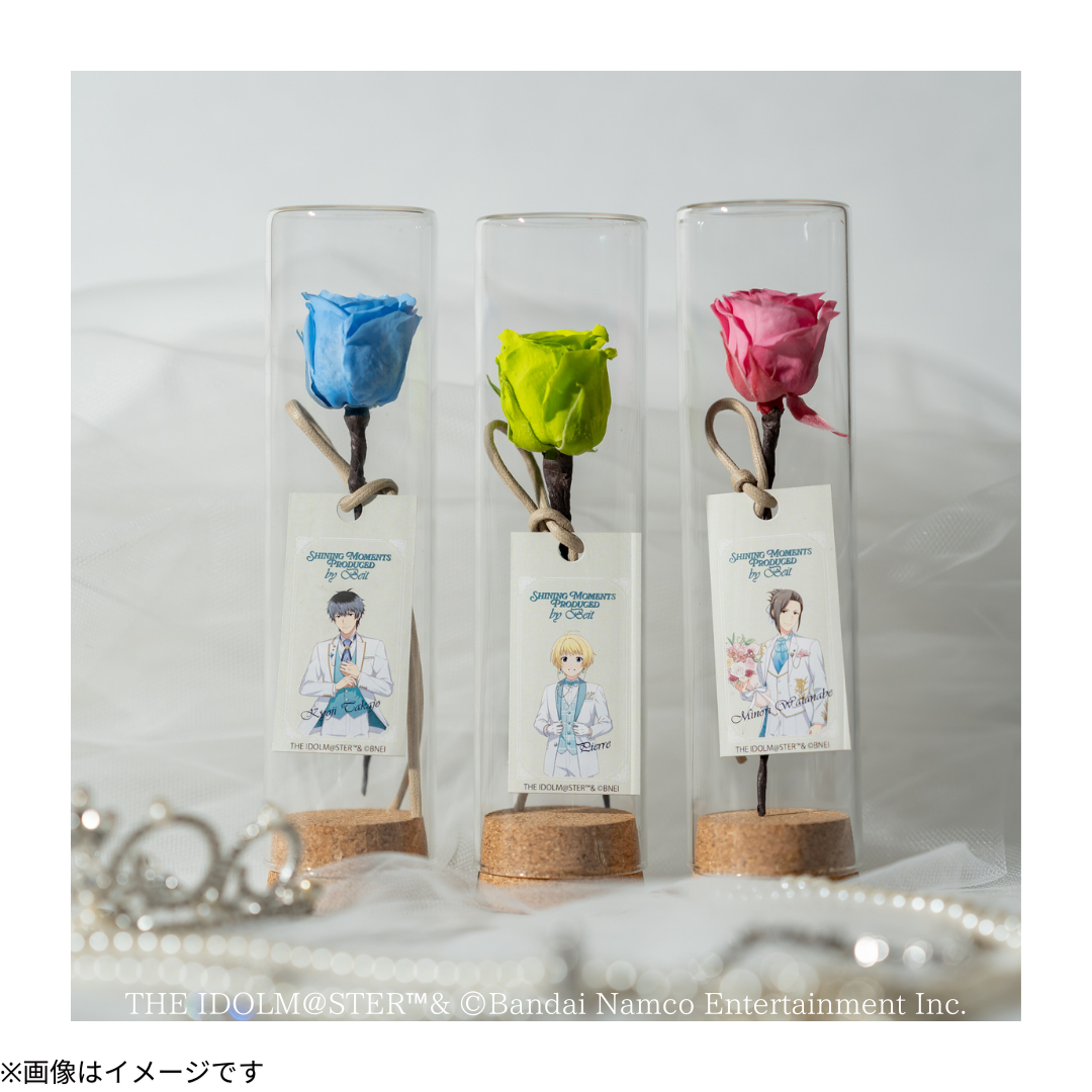 プラン利用者限定で購入できるオリジナルグッズとして、Beitの3人それぞれのイメージに合わせたプリザーブドフラワーのガラスグッズを企画・制作しました。