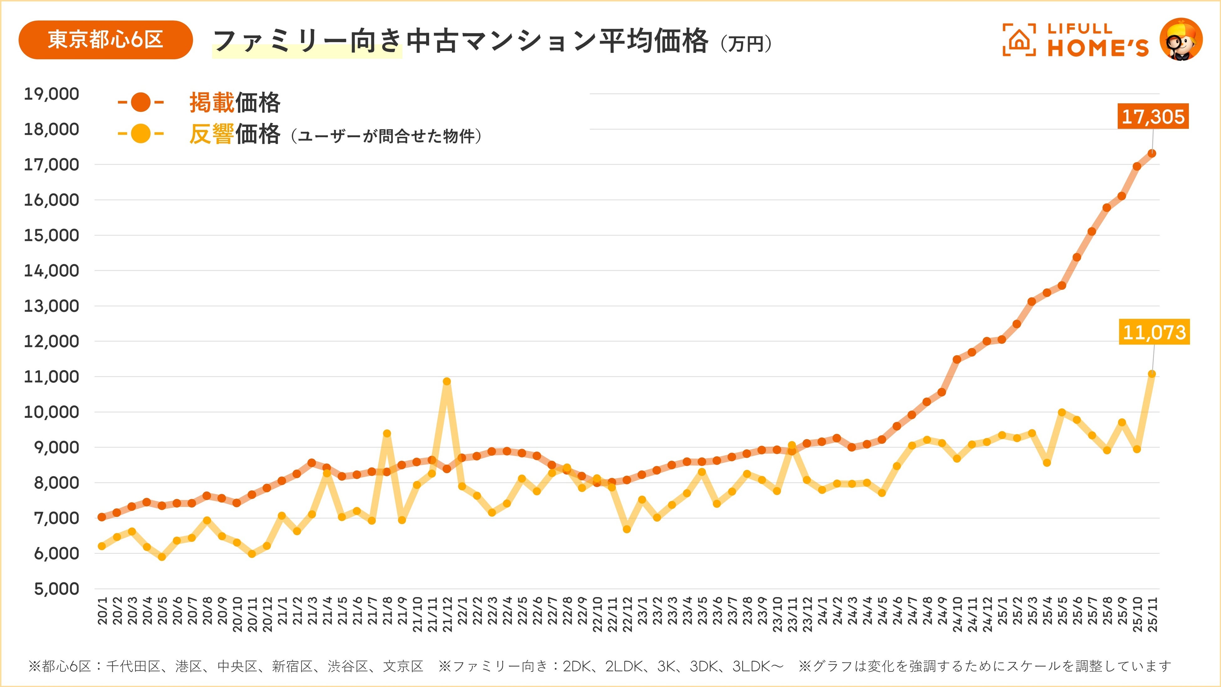 - 東京都心6区の掲載価格は1億7,305万円(前年同月比148.2%)で過去最高を更新