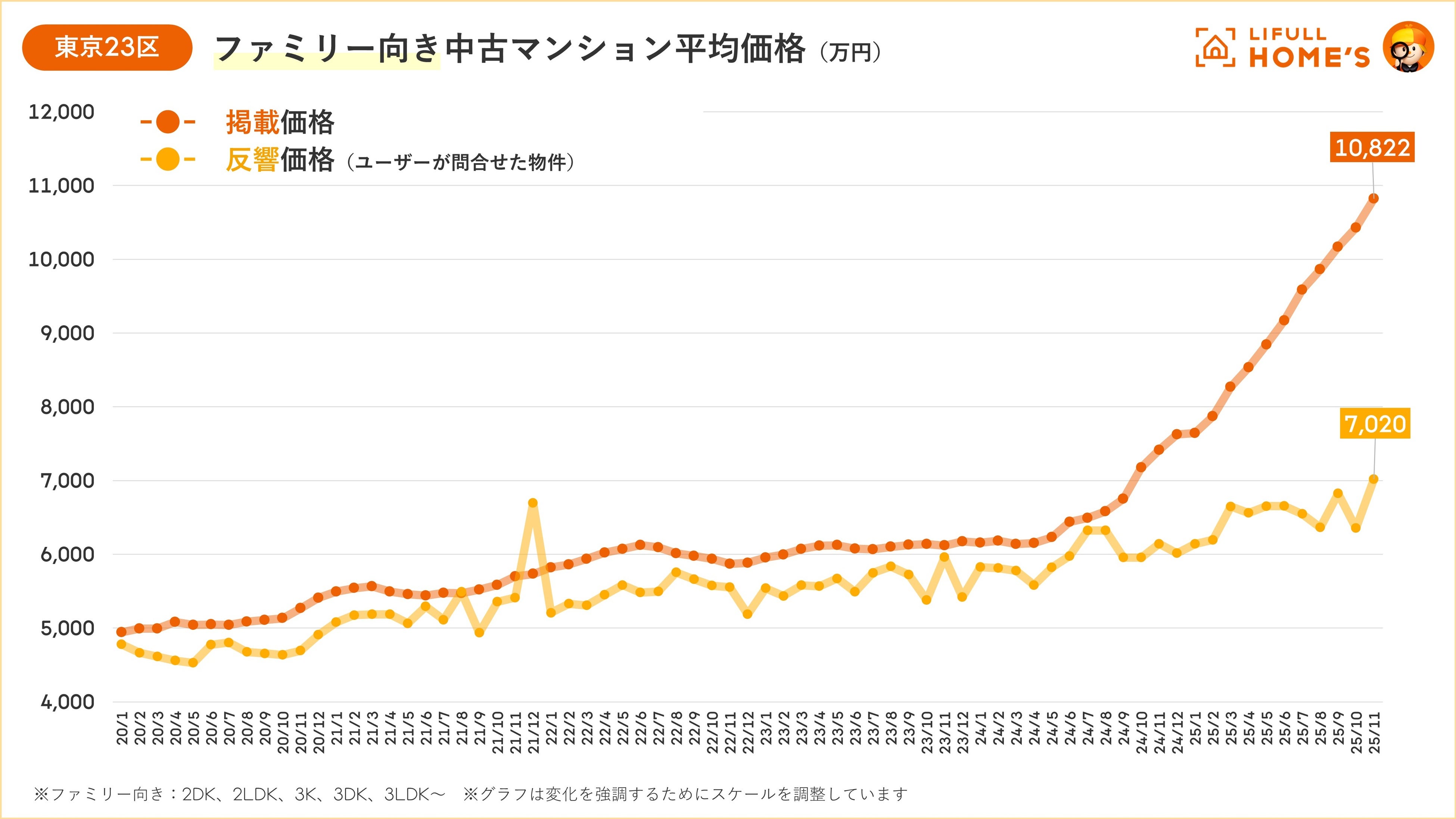 【東京|中古価格動向】東京23区ファミリー向き中古マンションは1億822万円で「過去最高」を更新、掲載価格は20か月連続で上昇