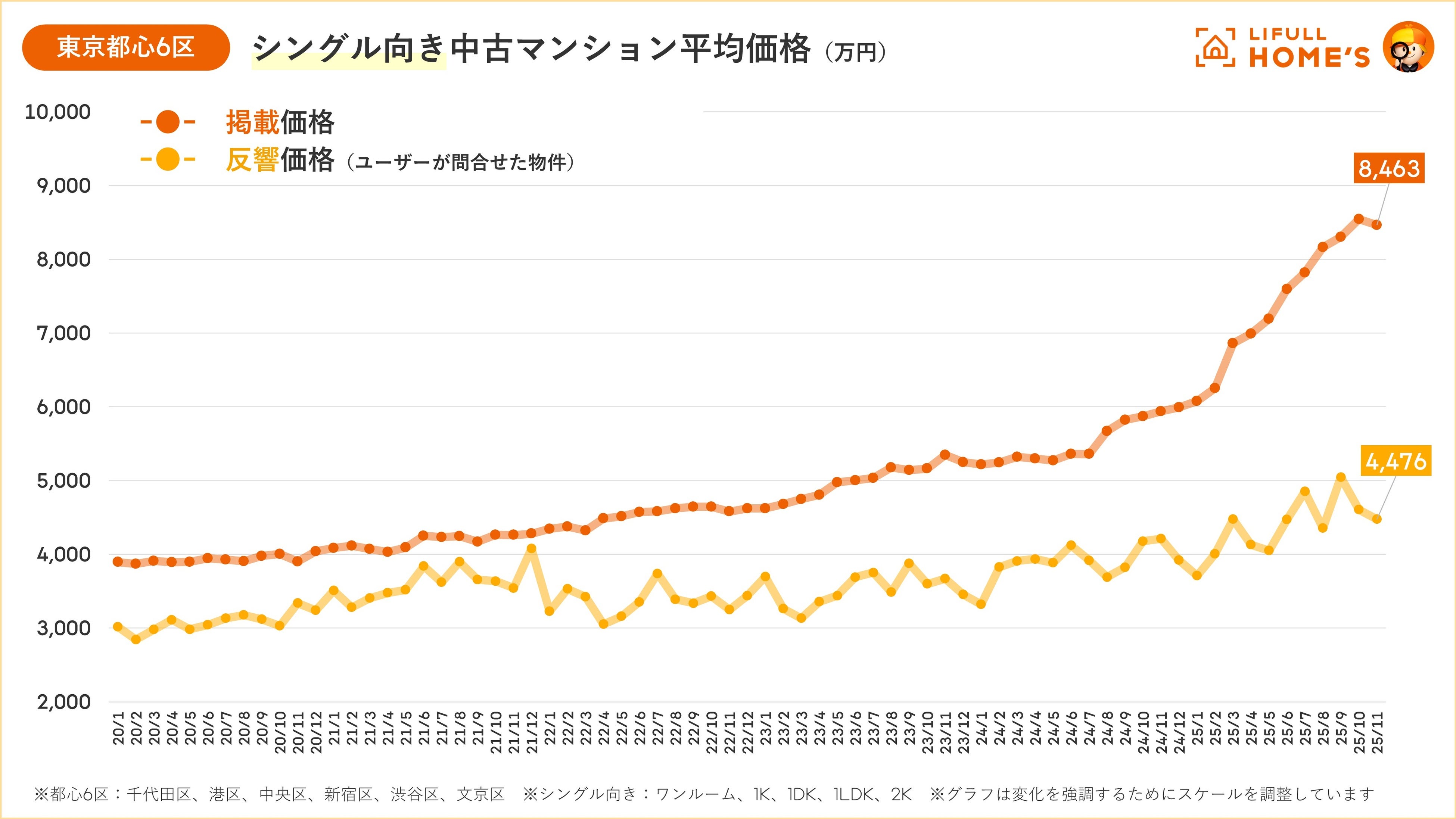 - 東京都心6区の掲載価格は8,463万円(前年同月比142.5%)