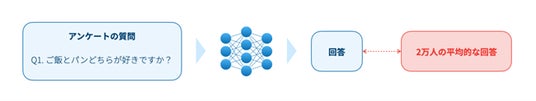 本技術の効果を検証するため、ドコモが独自に実施した味覚に関する2万人のアンケートを用いて、各設問に対して2万人の平均に近い回答を生成できるかどうかの評価実験を行いました。
