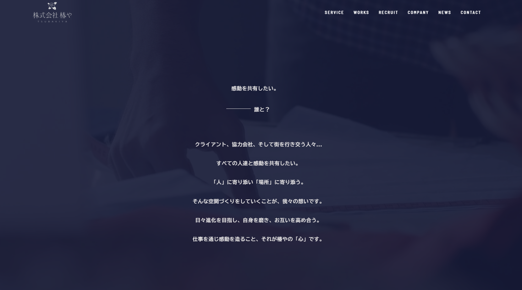 株式会社 椿やは、人と場所に寄り添い、感動を共有できる空間づくりを追求しています。お客様のイメージを共に描きながら、確かな技術と品質で理想のかたちを実現します。