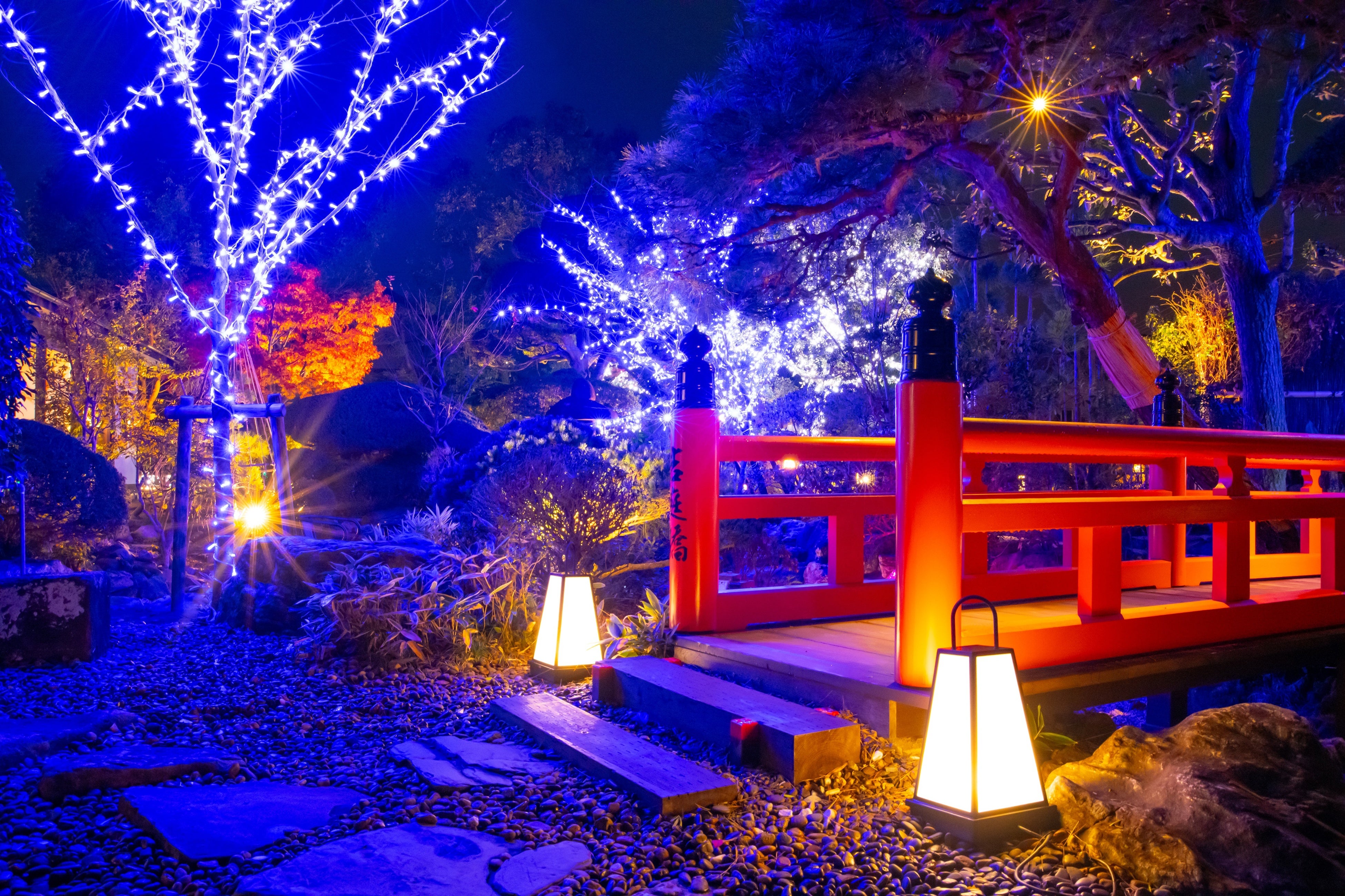 光に染まる夜の日本庭園。その景色と食が重なる冬限定の体験を。