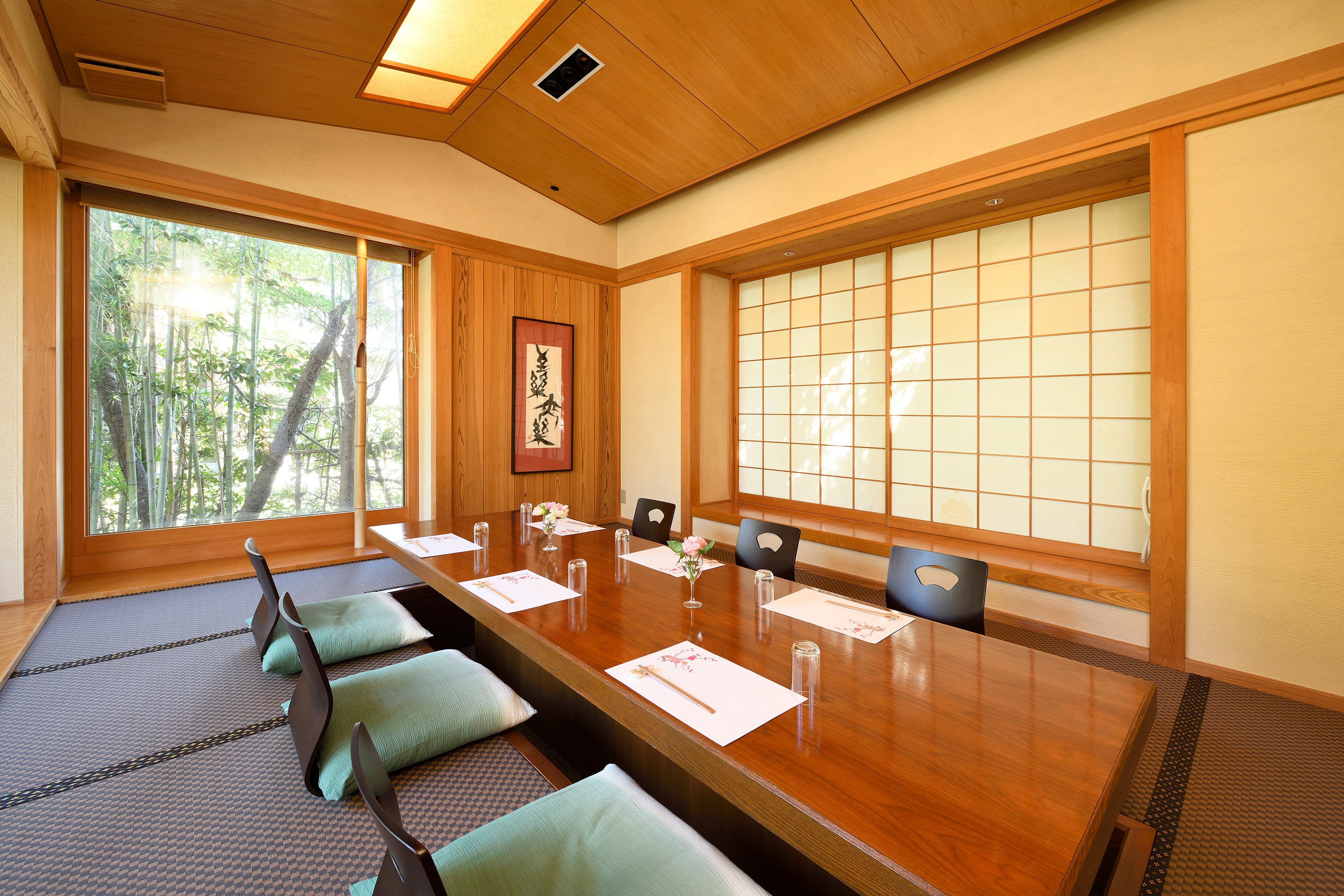 日本庭園を望む落ち着いた空間で、料理の流れとともにゆっくりと食事をお楽しみください。