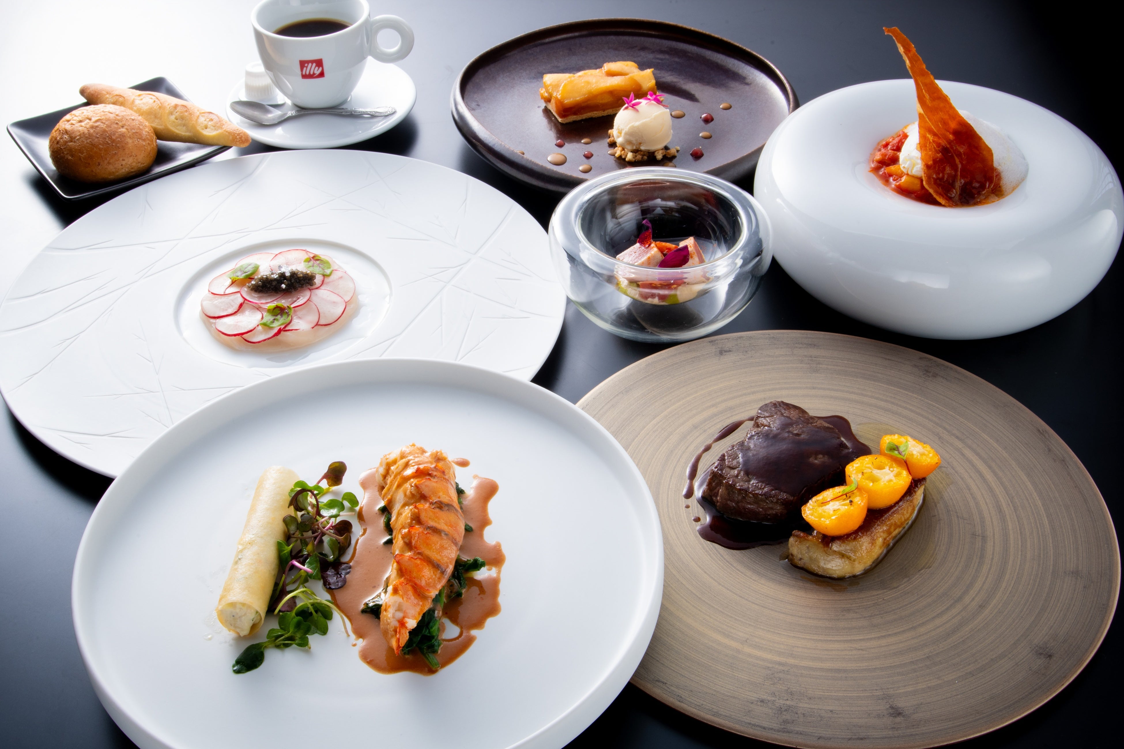 冬の澄んだ空気の中、静寂に包まれた日本庭園を灯りが優しく照らします。散策したあとは、灯りに包まれた日本庭園を眺めながら創作和フレンチのディナーをゆったりとご堪能いただけます。