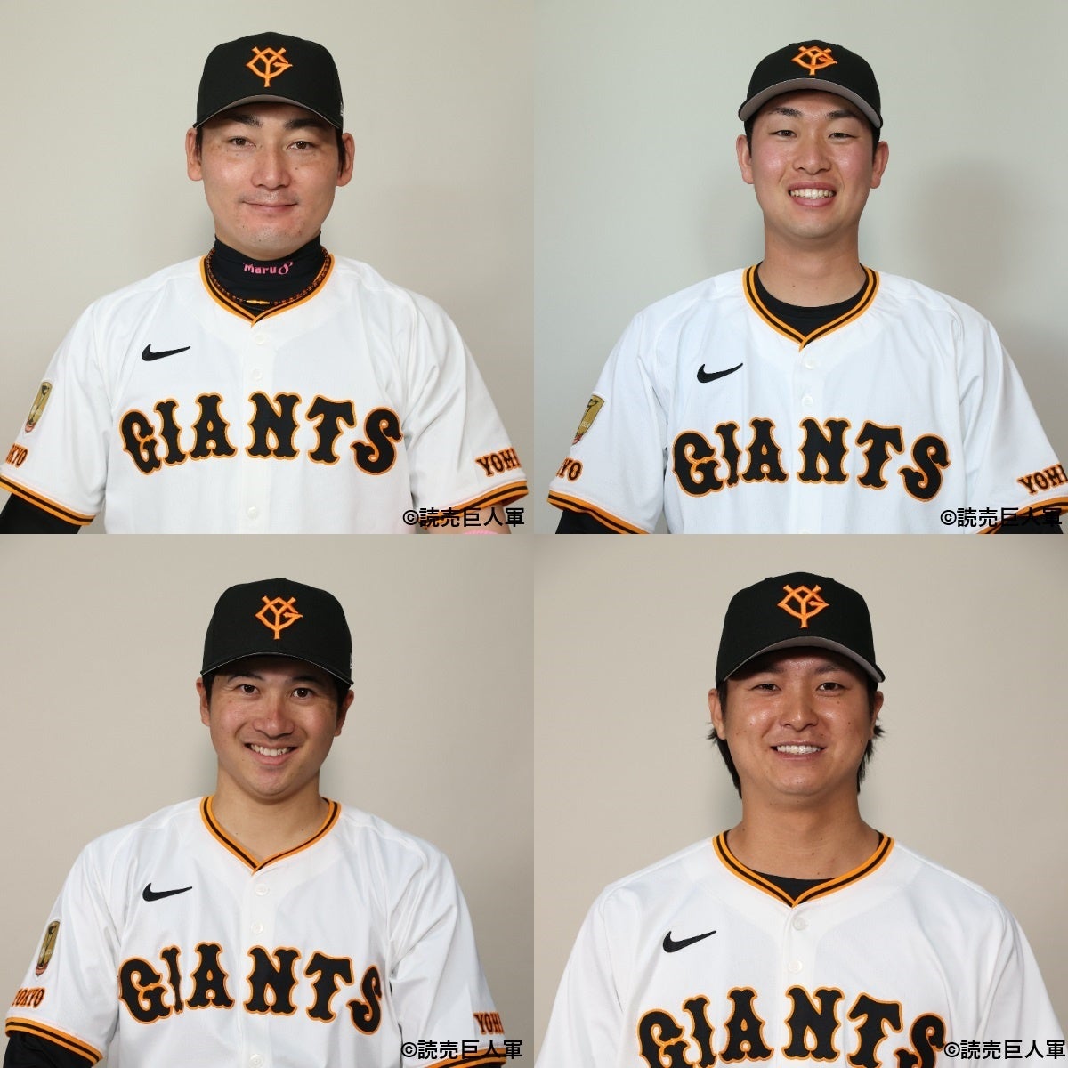 (左上)丸 佳浩選手、(右上)山崎 伊織投手、(左下)泉口 友汰選手、(右下)田中 瑛斗投手