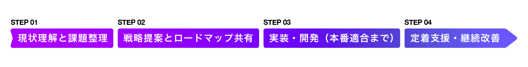 - 追加開発・内製化支援: 追加機能開発と改善サイクルの内製化を支援。