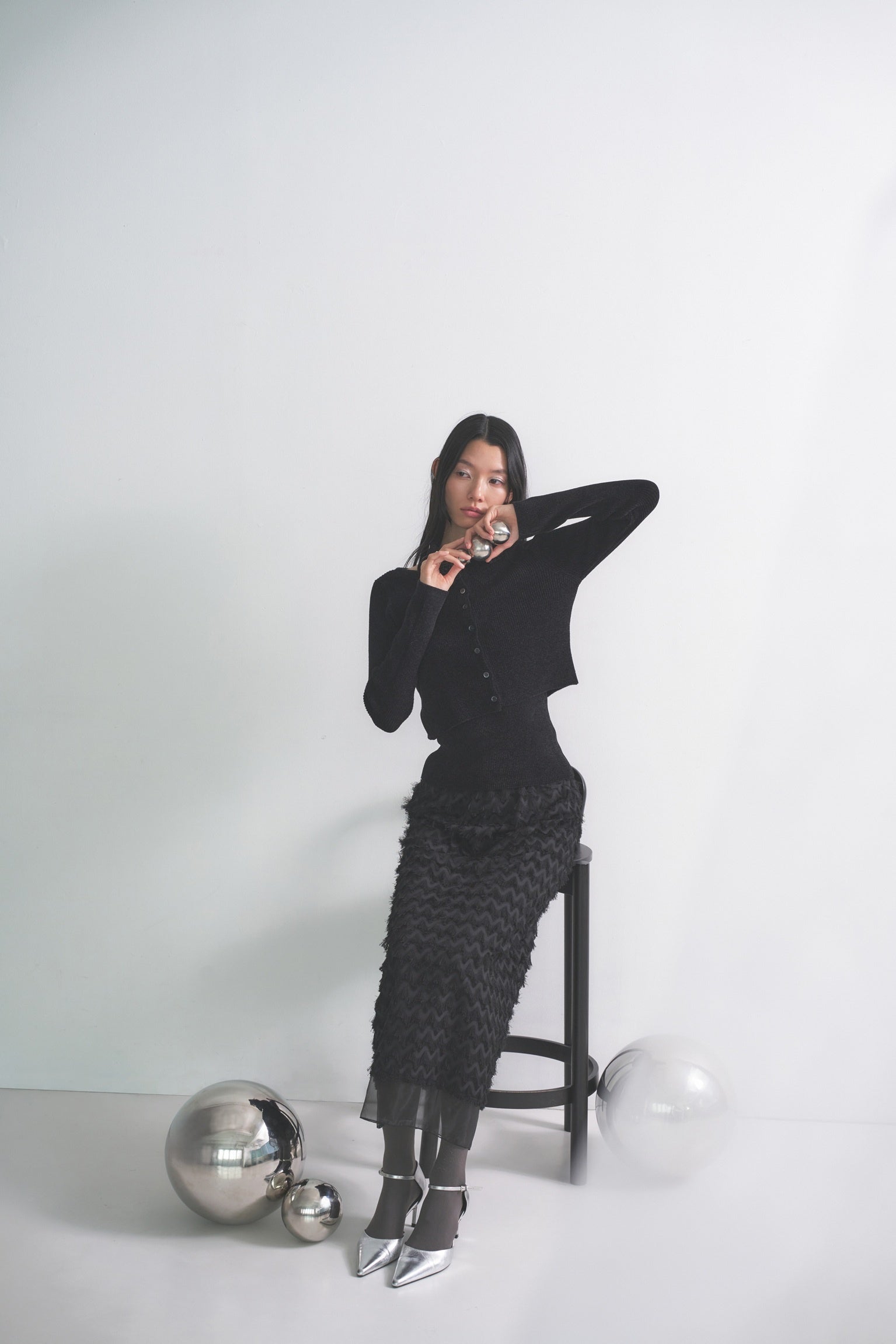 12月5日(金)公開の「HOLIDAY COLLECTION」特集ページでは、オフショルダーとドレープデザインがポイントのニットワンピースを主役にしたスタイリングや、ふんわりとしたピンクのフェザーニットが華やぐスタイリングなど、ホリデーシーズンを彩る5スタイルをピックアップ。