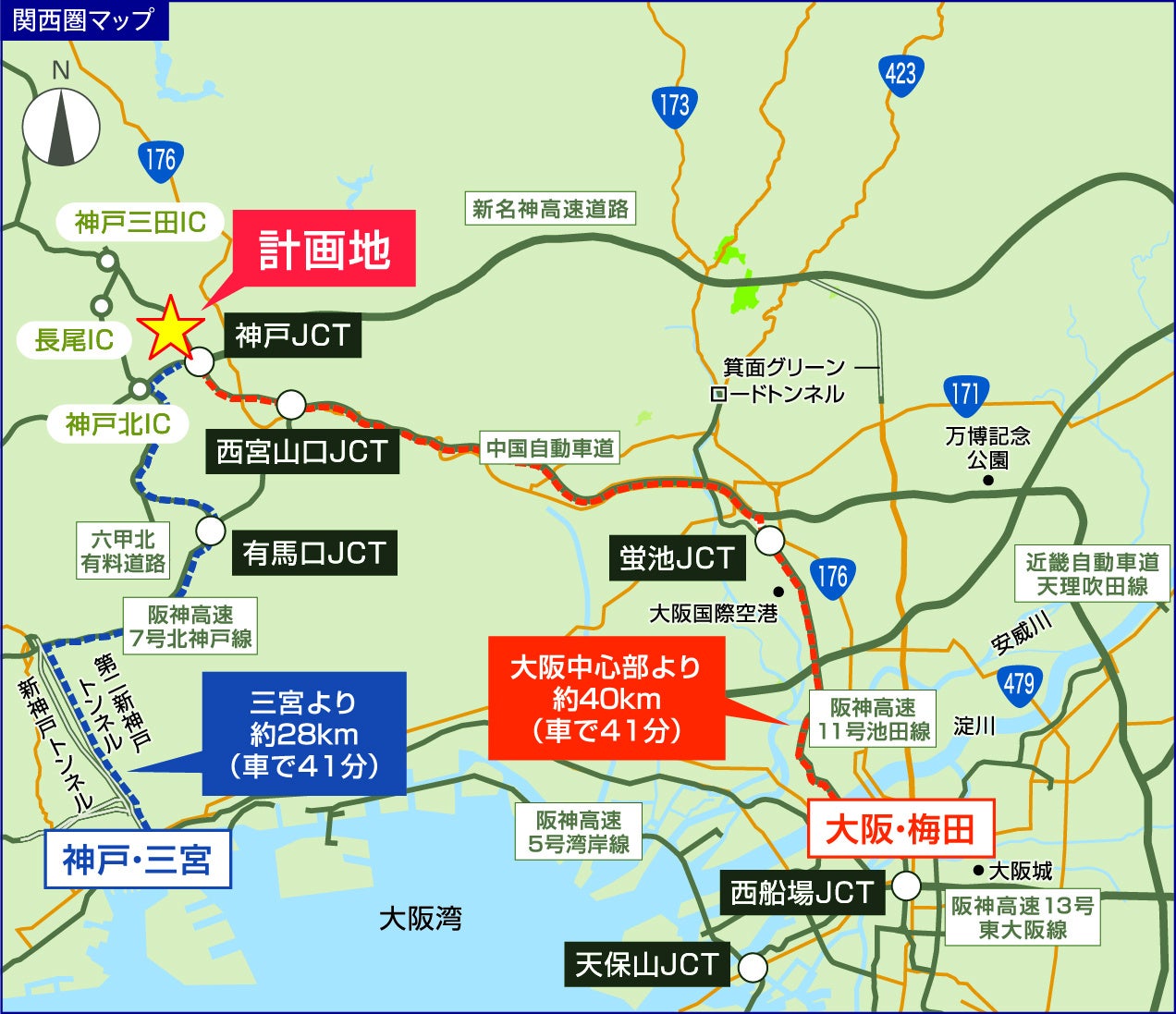 中国自動車道、山陽自動車道、六甲北有料道路の各ICが概ね5km圏内であるほか、物流集積ICである「西宮北IC」から約4.5kmと、物流拠点としても好立地です。