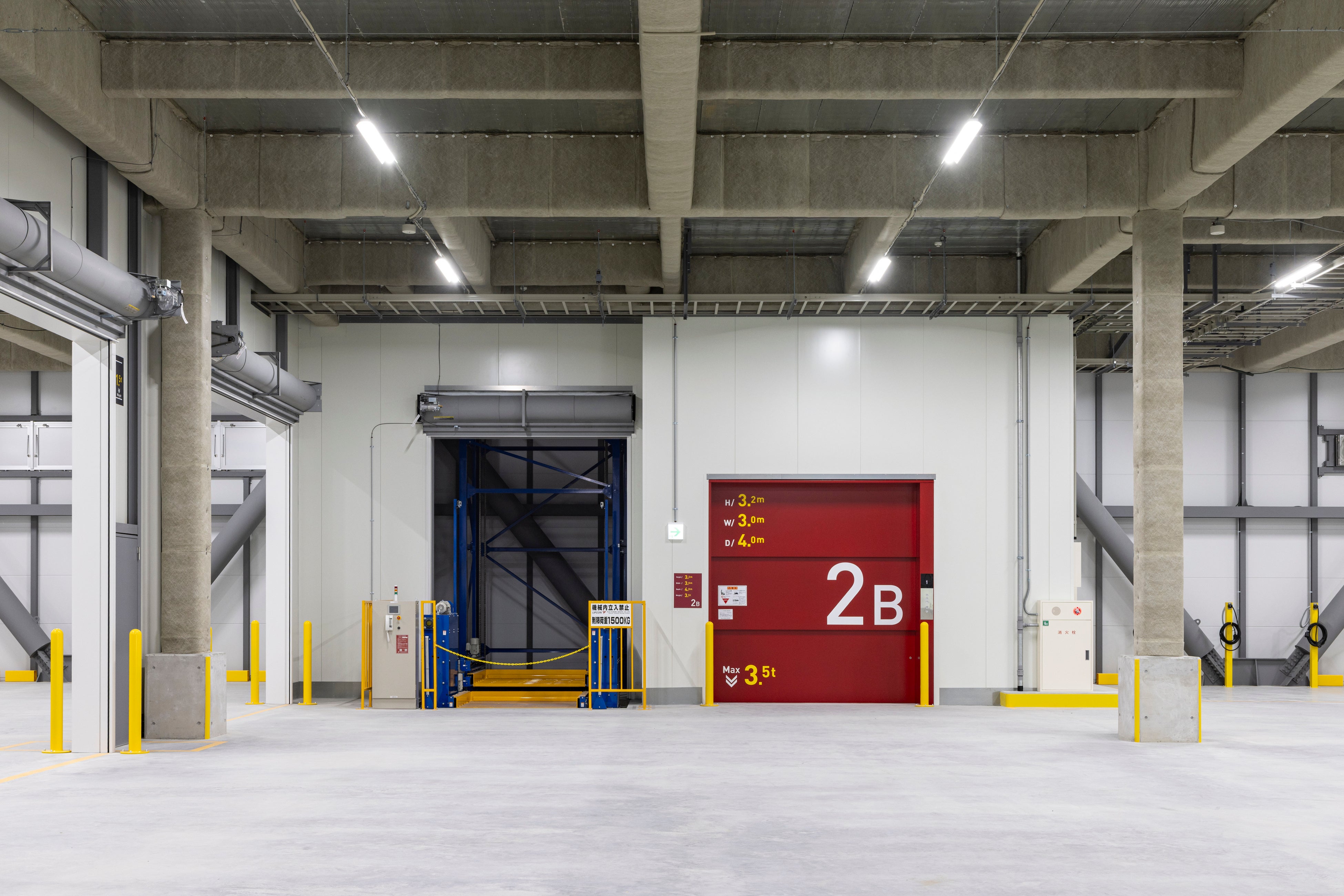 ・梁下有効高さ5.5m、床荷重1.5t/平方メートル・荷物用EV 積載荷重3.5t 2基、垂直搬送機 積載荷重1.5t 2基