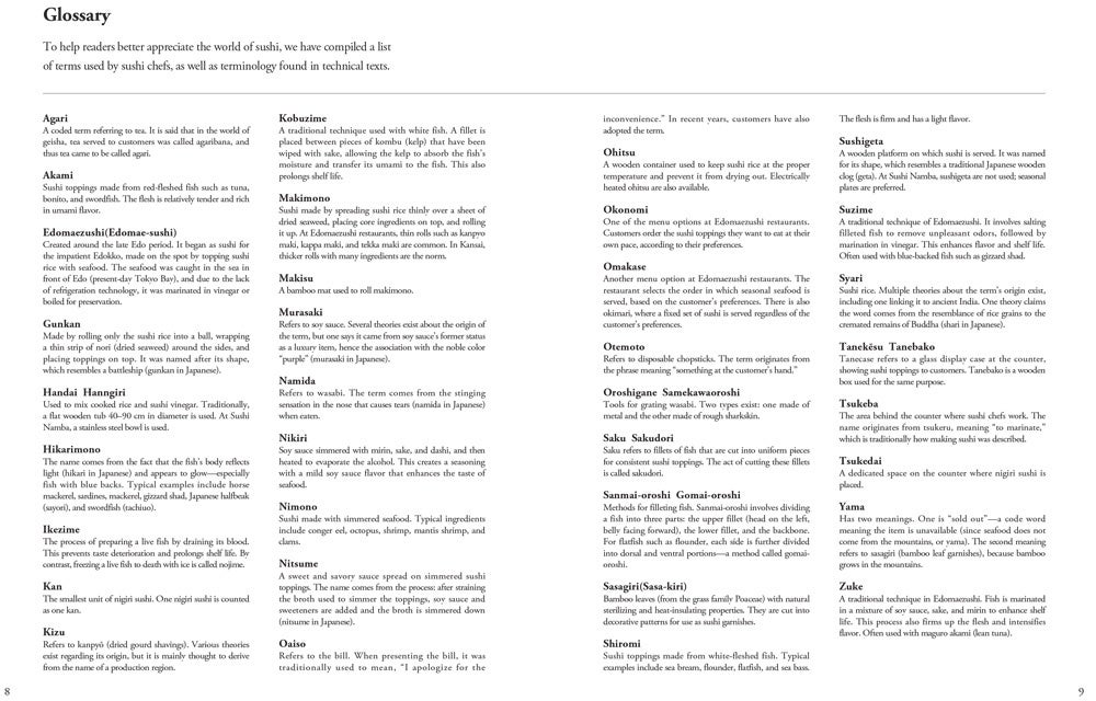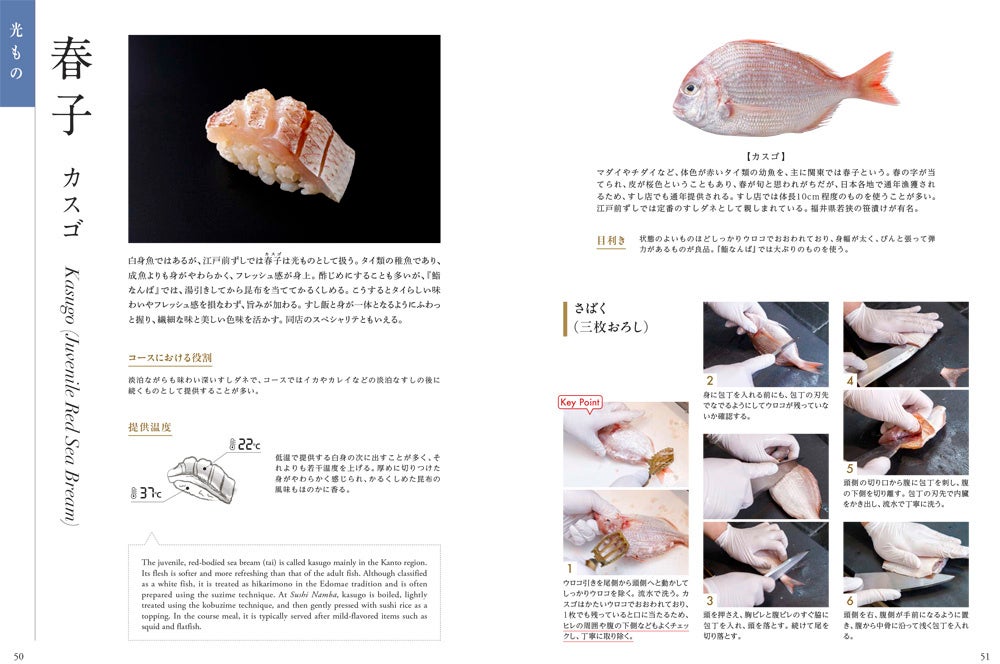 近年増え続ける外国人のすし愛好家に、日本が誇るすし文化の魅力を広く伝えるために、ところどころに英訳も併記