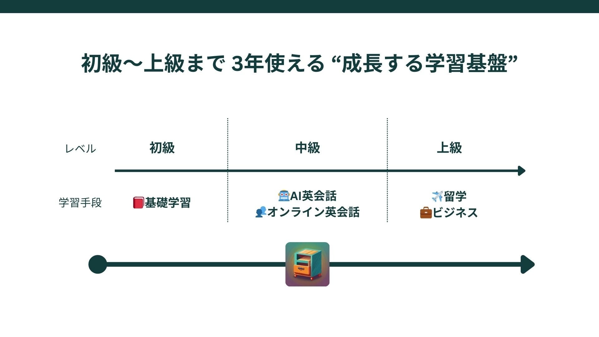 このように、学習ステージが変わっても“アウトプットを通じて英語を自分の言葉にしていく場”という役割は揺らぎません。3年、5年と長期的に使える“成長する学習基盤”となる設計です。