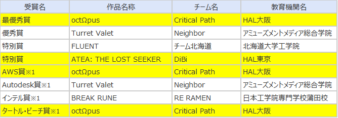 株式会社カプコン(以下、カプコン)が主催する、ゲーム制作コンペティション『CAPCOM GAMES COMPETITION』にて、専門学校HALの『octΩpus』が最優秀賞を受賞し、賞金500万円を獲得!加えて協賛企業賞として、AWS賞、タートル・ビーチ賞も受賞しました。また、『ATEA:THE LOST SEEKER』が特別賞を受賞しました。