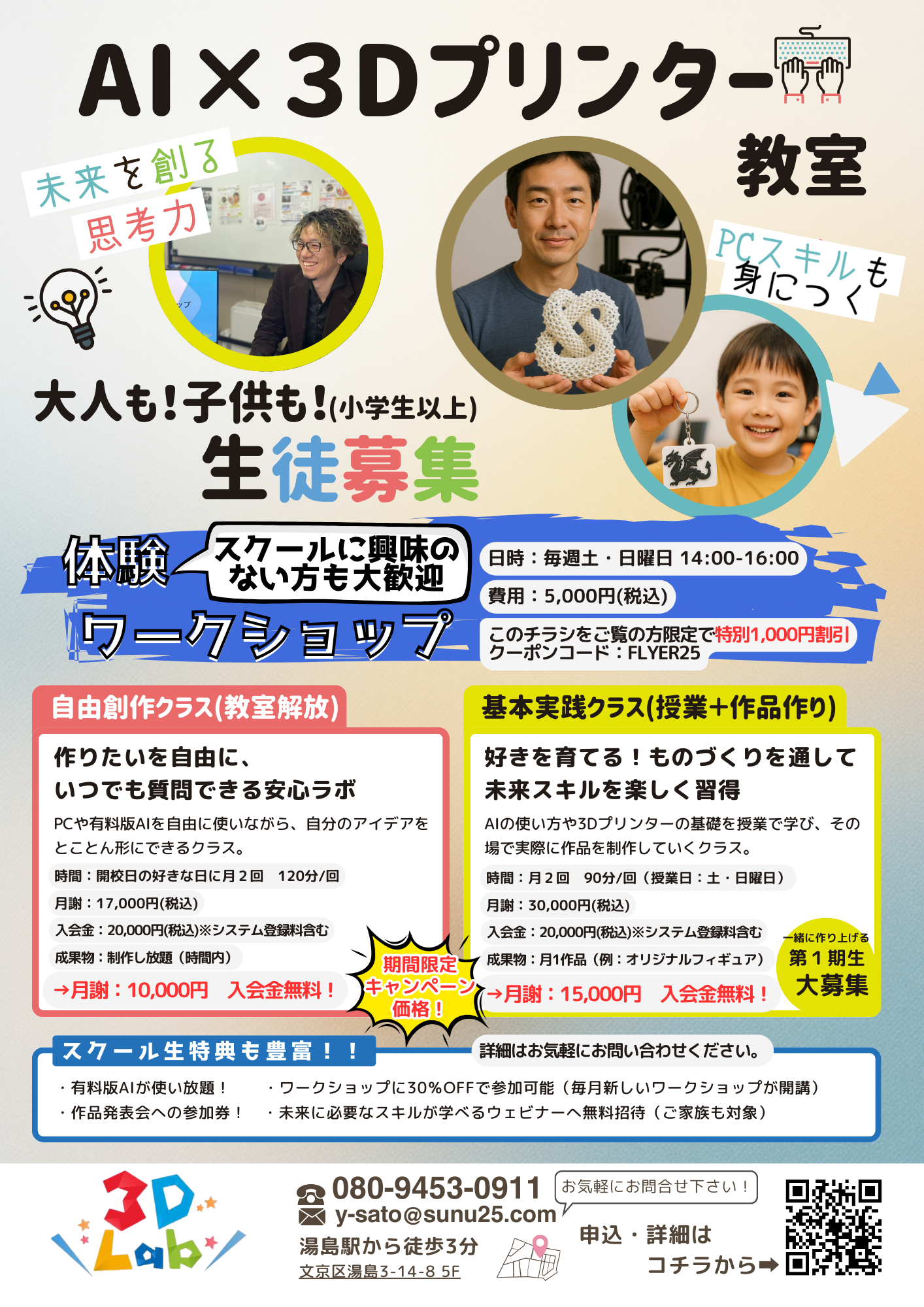 3DLabは、生成AIと3Dプリンターを融合させた楽しく学べるスクールです。
