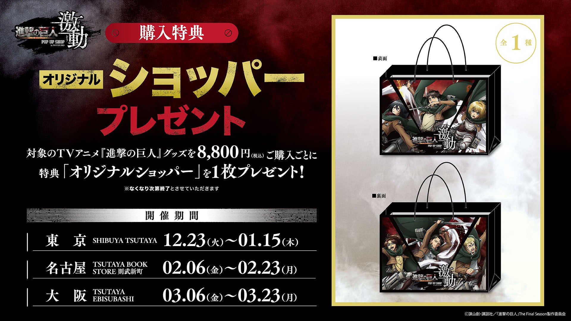 TVアニメ『進撃の巨人』対象商品を税込8,800円お買い上げごとに特典「オリジナルショッパー(全1種)」をプレゼント!