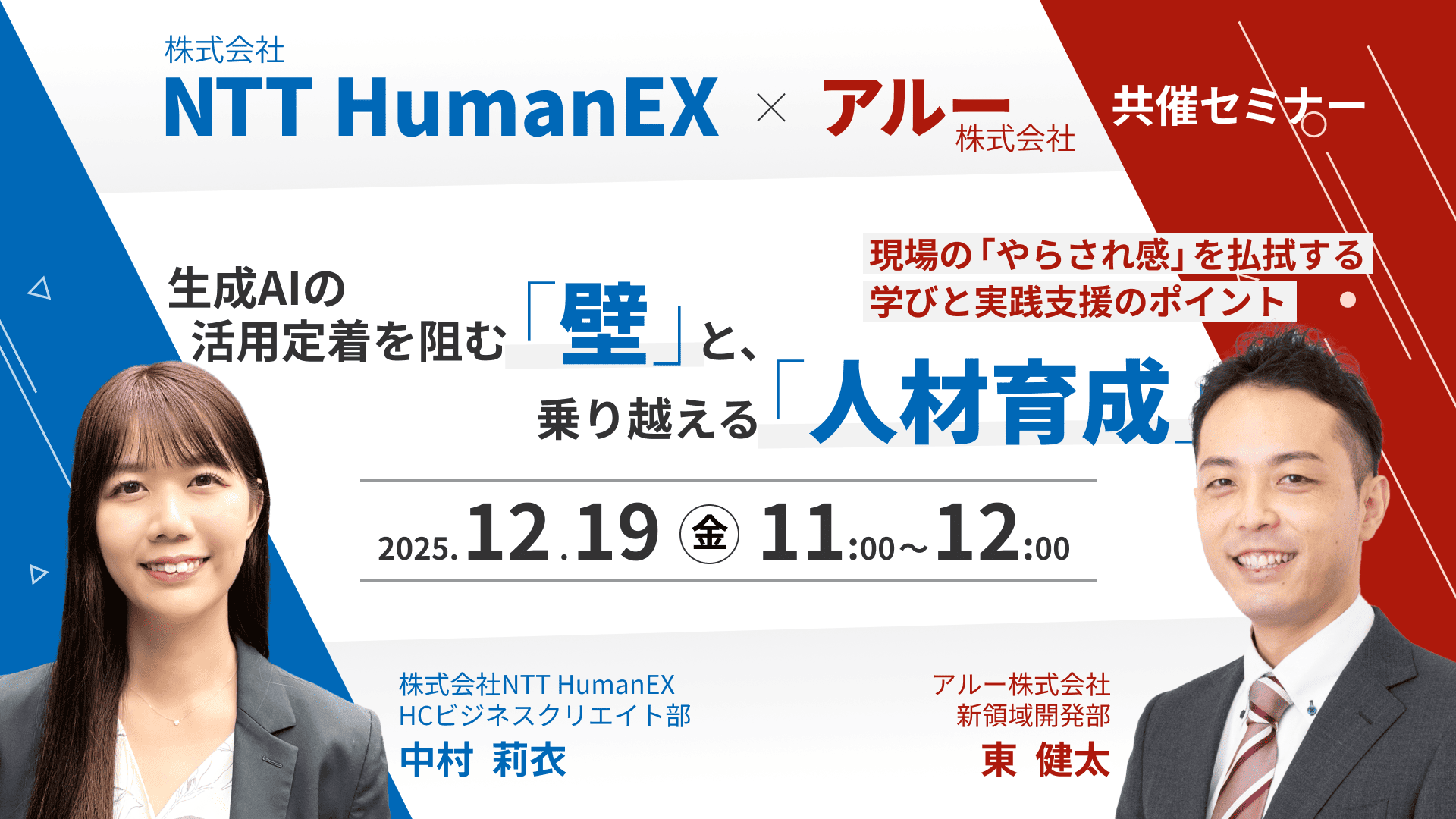 人材育成・社員研修の「アルー」人事担当者向け無料オンラインセミナー開催スケジュールのお知らせ ~グローバル経営と人材育成、自発的生成AI活用、年上部下マネジメントの基本~