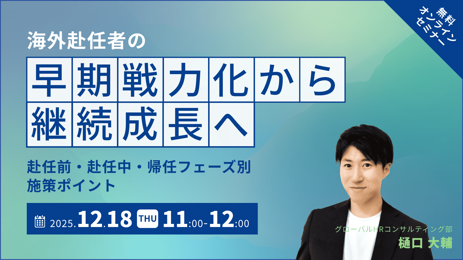 <3>海外赴任者の早期戦力化から継続成長へ~赴任前・赴任中・帰任後のフェーズ別施策ポイント~(12月18日(木))