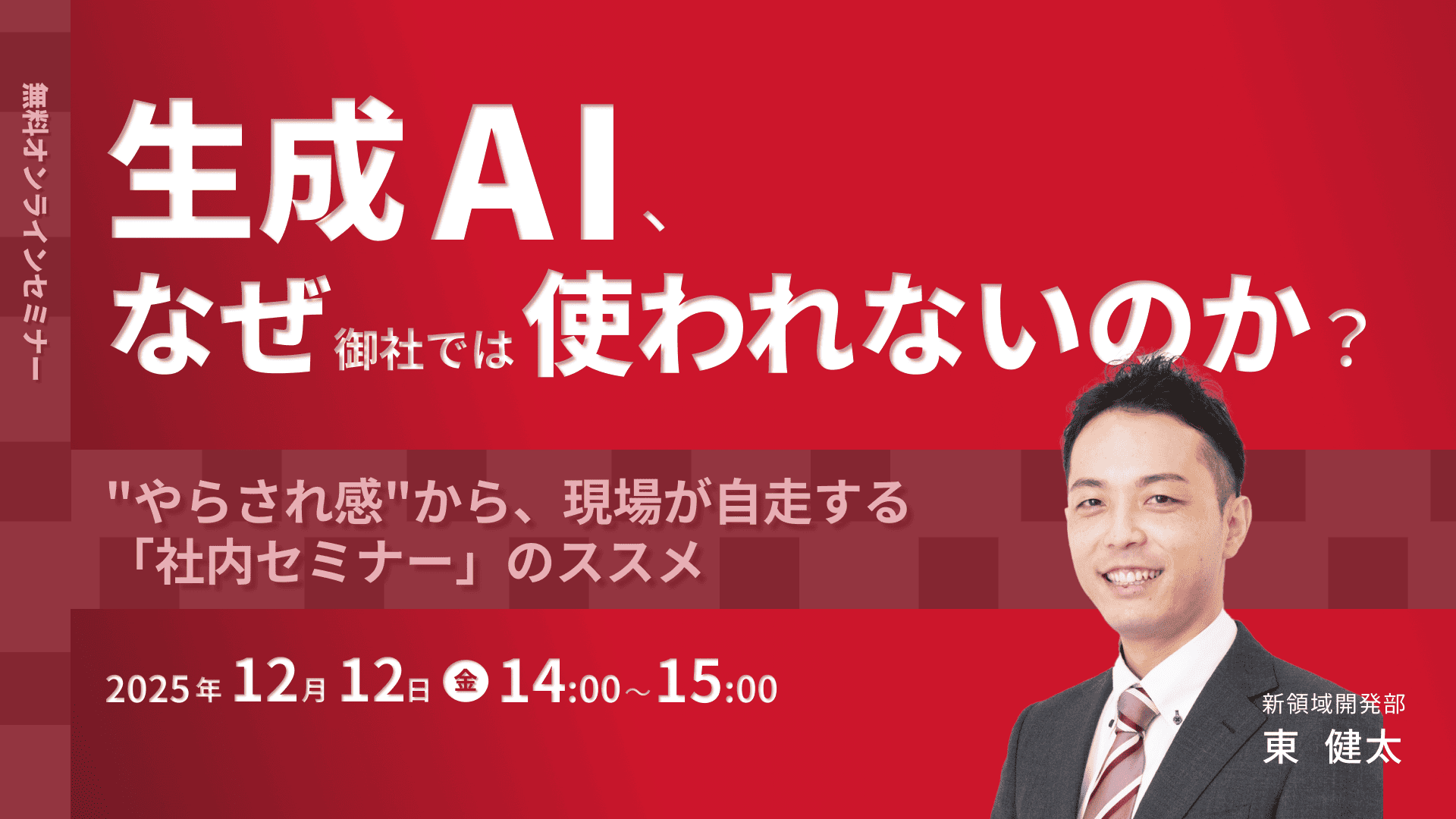 <4>生成AI、なぜ御社では使われないのか? "やらされ感"をなくし、現場が自走するようになる「社内セミナー」のススメ(12月12日(金))