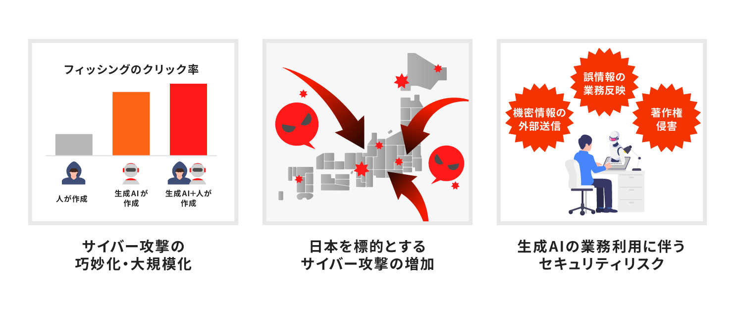 サイバー攻撃は技術的な対策だけでは防ぎきれず、また、個々人が生成AIを活用してより高度な業務に従事するようになる社会の変化を受けて、従業員一人ひとりの判断・行動が組織のセキュリティレベルを左右する時代に突入しています。■AI時代に求められるセキュリティ対応