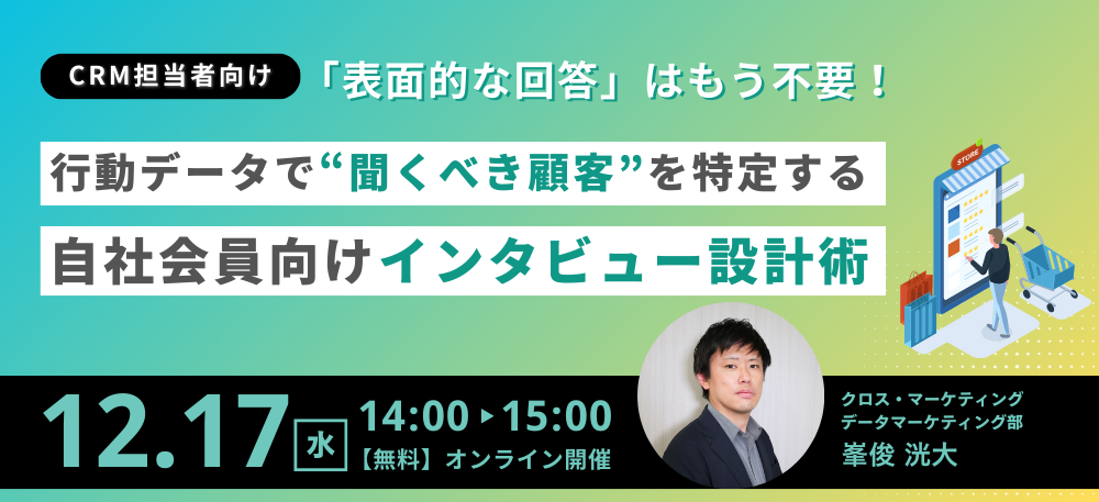 本セミナーは、会員向けプラットフォームの改善やCRM施策の精度向上のために自社会員顧客へのインタビュー実施を検討している方向けの内容です。