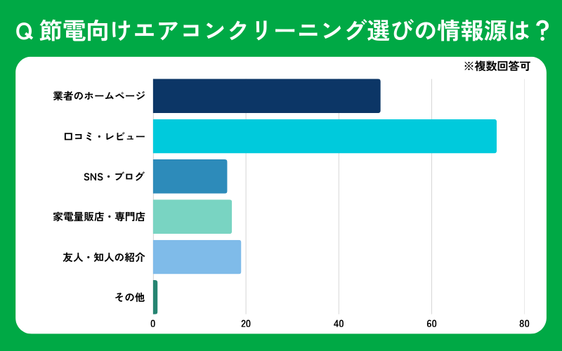 エアコンクリーニングを節電・光熱費の観点で選ぶ場合、どの情報源を参考にしますか?(複数回答可能)