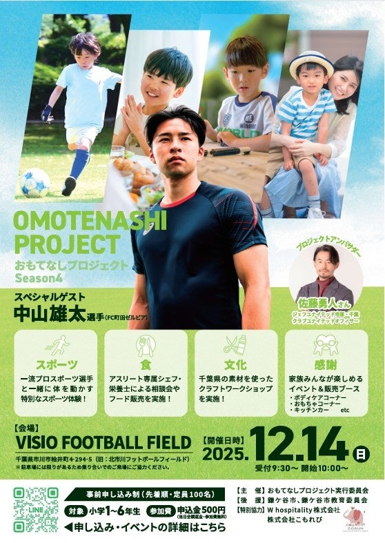 2025年12月からは、プロジェクトアンバサダーとして佐藤勇人氏を迎えてさらにパワーアップ。特別ゲストには、FC町田ゼルビアの中山雄太選手の出演も決定し、参加される皆さまの心に残る特別な一日をお届けします。