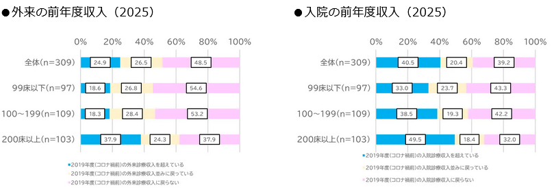医療機関の経営環境は近年大きく変化しており、経営難に直面する病院が増加しています。全国309病院を対象とした調査※では、約4割の病院で、外来・入院収入がコロナ前の水準に戻らず、経営状況を圧迫していることが明らかになりました。