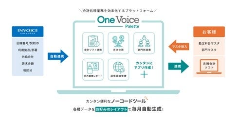 株式会社インボイス(代表取締役:仁多見 斎 本社:東京都千代田区)は、当社が提供する「Gi通信」および「OneVoice公共」の請求データとお客様の社内データを組み合わせ、会計処理業務を効率化するプラットフォーム「OneVoice Palette」の提供を開始いたします。