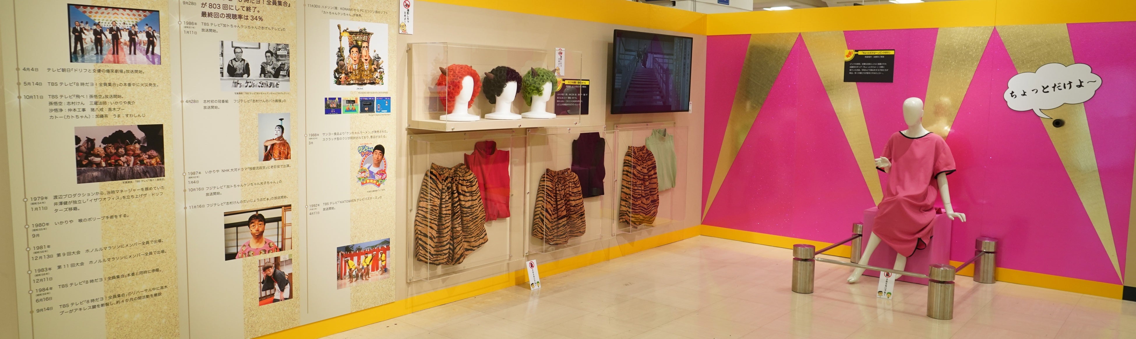 年表、衣装、秘宝展示、懐かしの番組やCMの放映、フォトスポットなど見て、体験してお楽しみいただけます。※写真は別会場の様子です