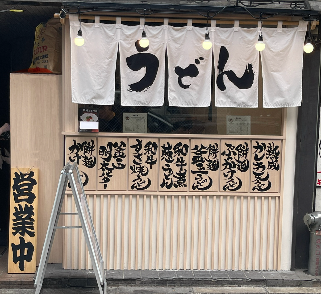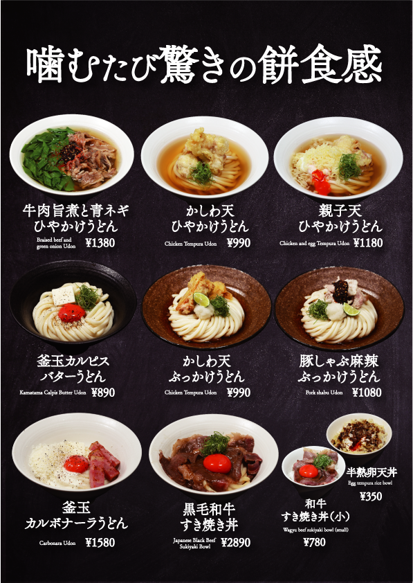 2025年8月1日にOPENした餅麺。目指したうどんは、食感です。従来のシコシコ麺の讃岐うどんや柔らかい食感の伊勢うどんなどとは異なるタピオカのような『モチっと食感』を目指しました。 粉は、国産小麦を中心に、じっくり熟成させ独自の麺に仕上げました。茹で上がったうどんは『つるり』とした舌触り、一口噛んだ瞬間の『もっちりとした食感』、そしてその『グミの弾力感』。それは今ままで無かった食感です。さらに、その餅麺の出汁は旨味の塊。100種以上の配合から黄金出汁を仕上げました。