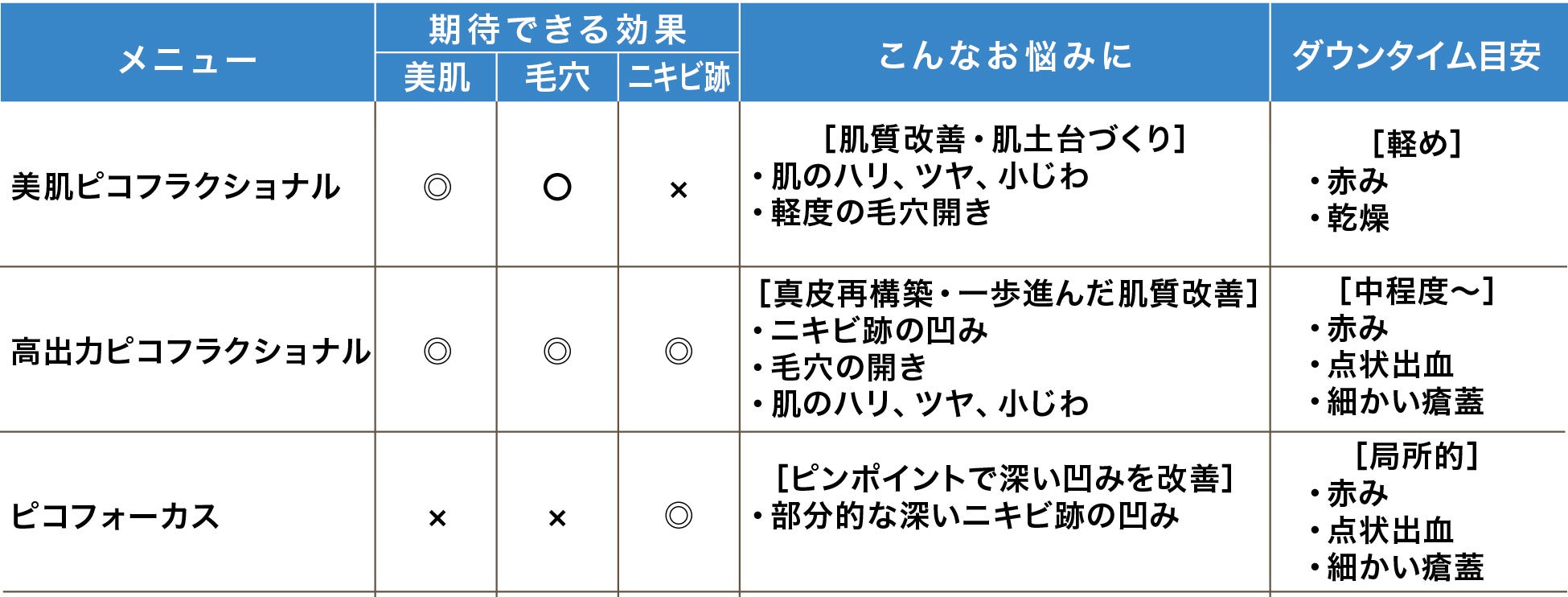 『高出力ピコフラクショナル』『ピコフォーカス』