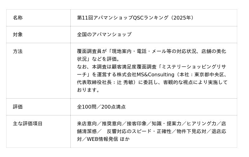 アパマンショップ、第11回QSCランキング結果発表満点店舗は全国43店(八千代中央3年連続/新潟東2年連続)