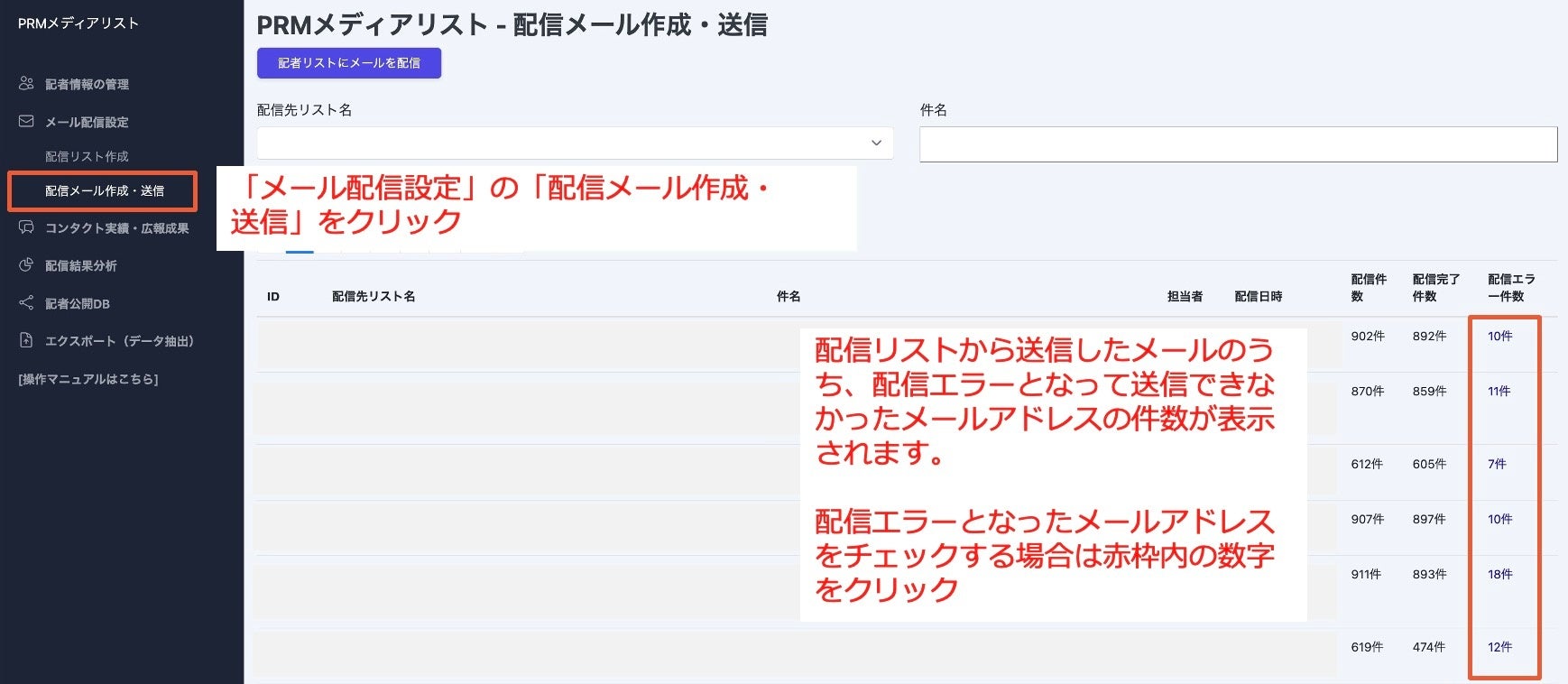 PRMメディアリストに追加された「配信エラー管理機能」では、配信エラーとなったメールアドレスを自動で一覧化します。
