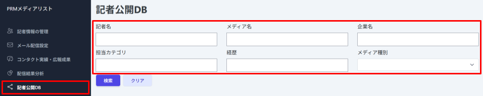 ▲PRMメディアリストの「記者公開情報」では各種情報から記者の検索が可能