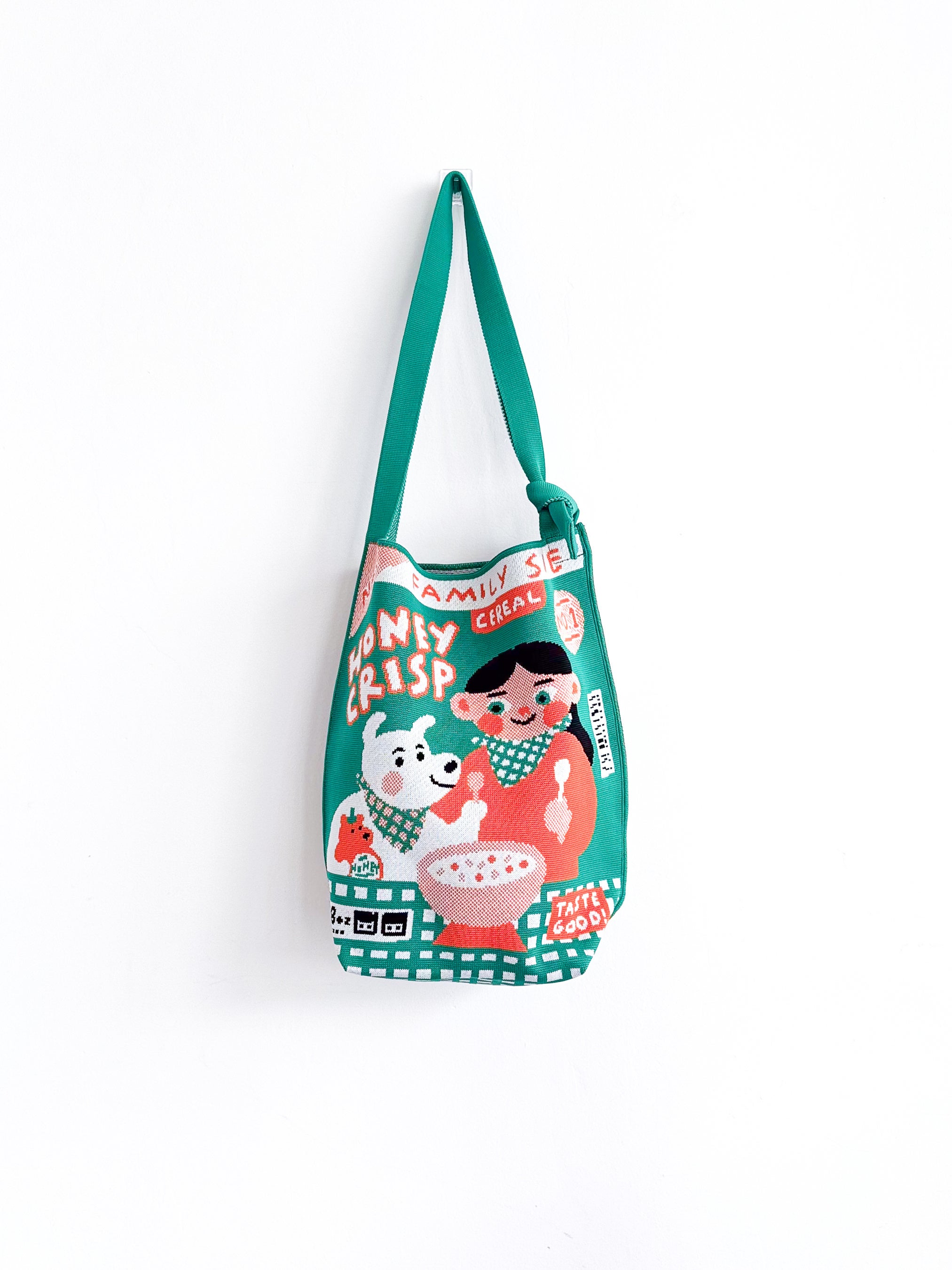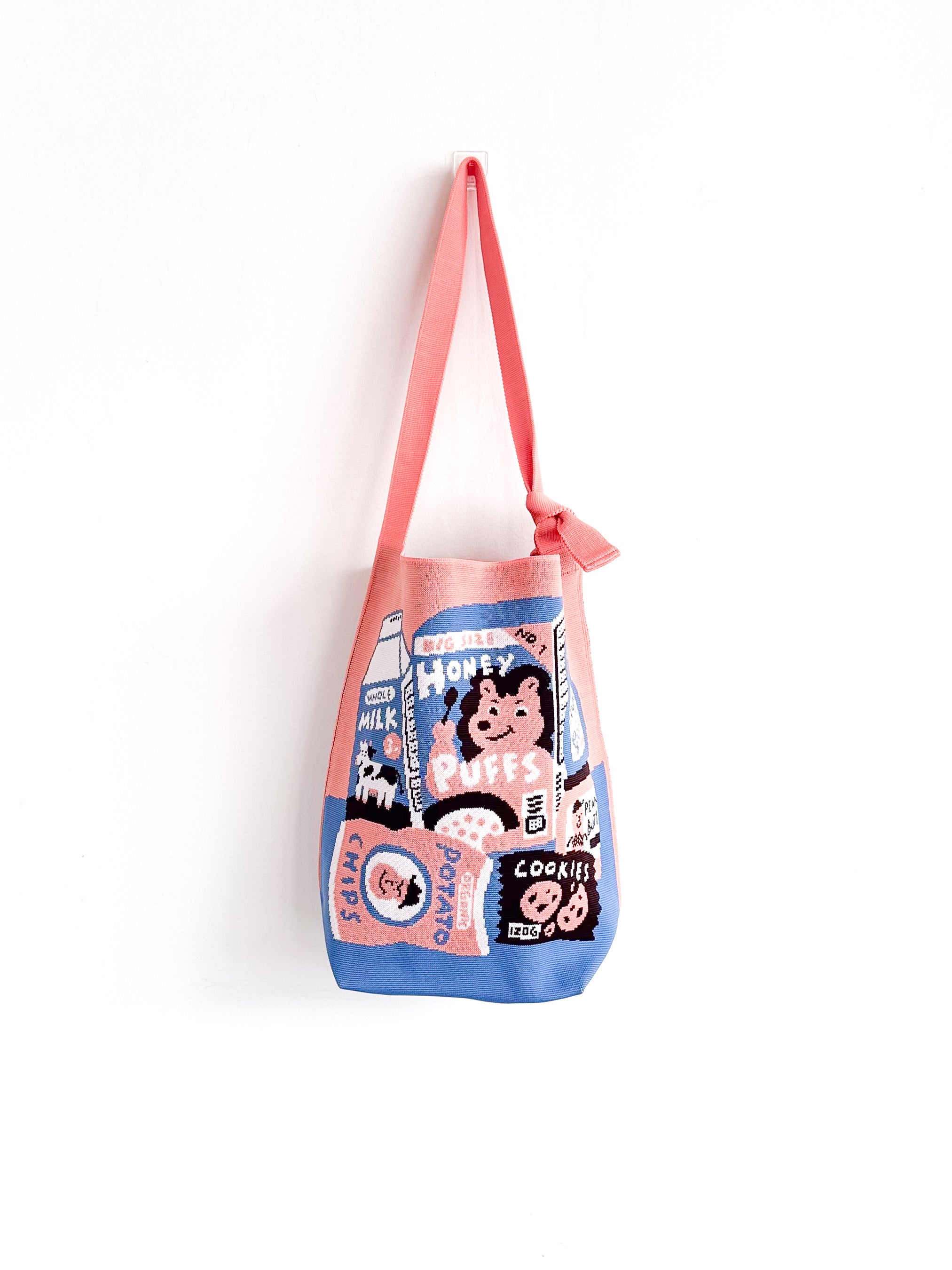 ポップでノスタルジックなイラストを描き、近年はスーパーマーケットをテーマにしたペインティングと陶芸作品を制作しているアーティスト山川 はるかとKNT365の初のコラボレーションが実現しました。今回のラインアップでは、マチがついていて大容量の「Fourty」や「Mam」を始め、「Bunny」の形に山川はるかのポップなイラストを編地で表現しています。