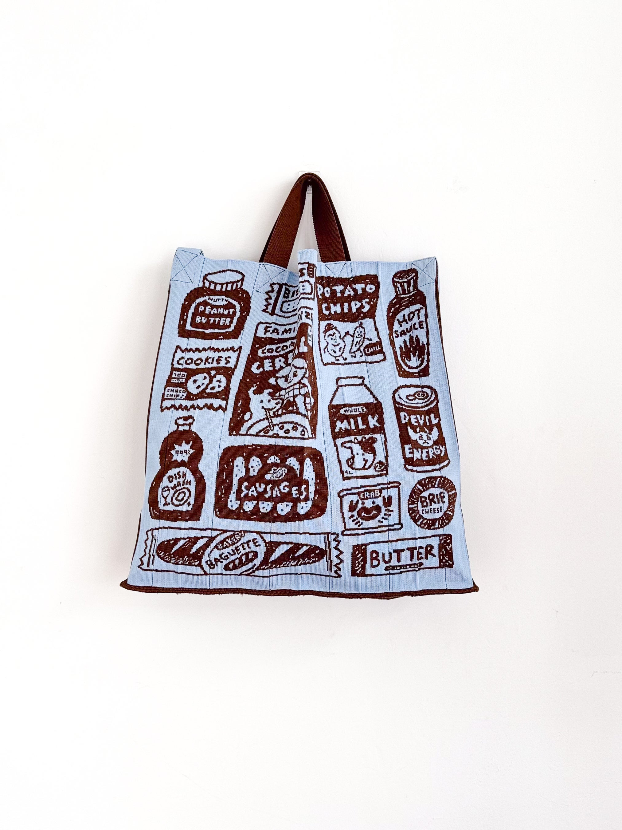 KNTさんのバッグを以前から愛用していたので、今回コラボ作品を作っていただけてとても嬉しいです!スーパーマーケットをテーマにした作品を作っているので、スーパーでの買い物が楽しくなるようなバッグをデザインしました。