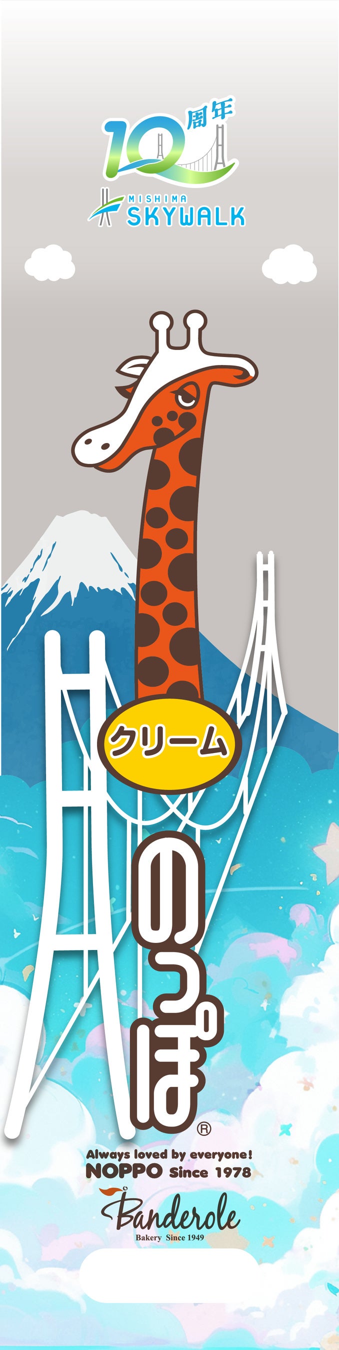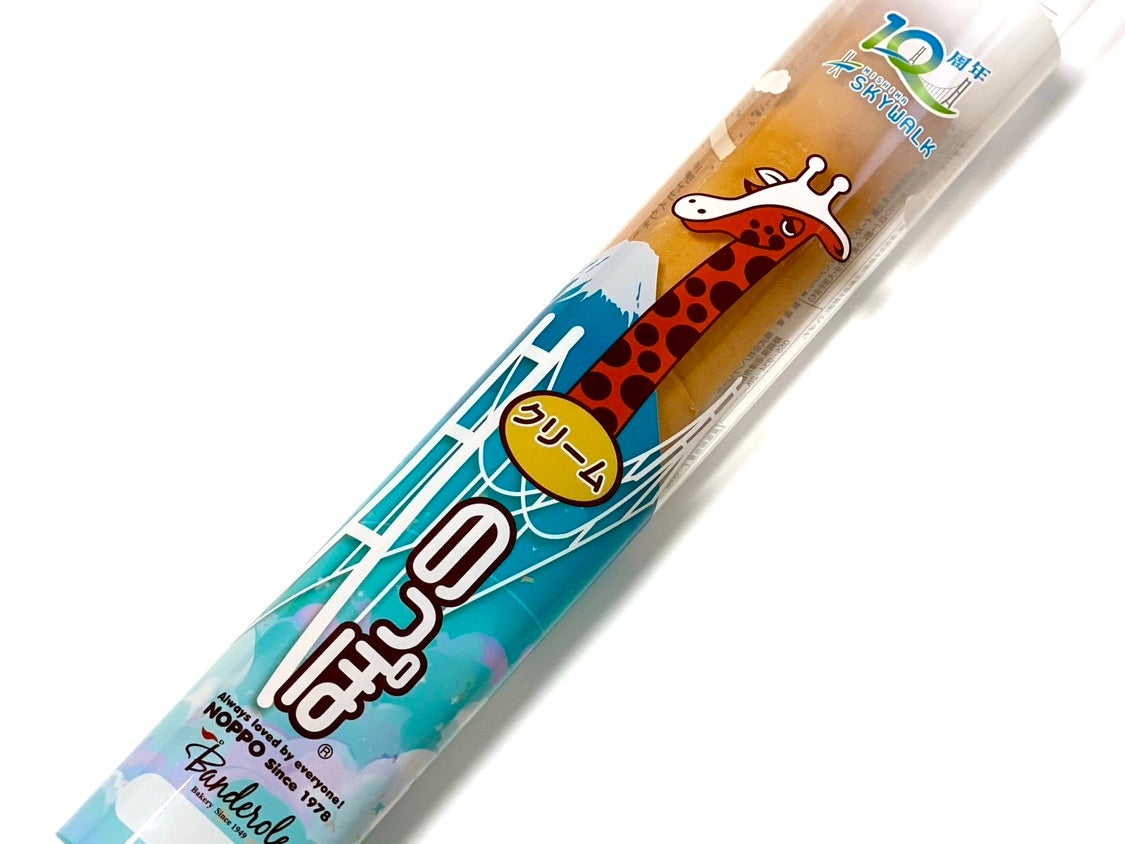 静岡県民のソウルフードともいえる人気のおやつパン『のっぽパン(R)』が、三島スカイウォーク限定のパッケージになって登場します。長さ34cmのパンにミルククリームをサンドし、ちょっぴりユーモラスなキリンのキャラクターが特徴です。1978年誕生、累計2億本突破した静岡県民に大人気のソウルフードです。