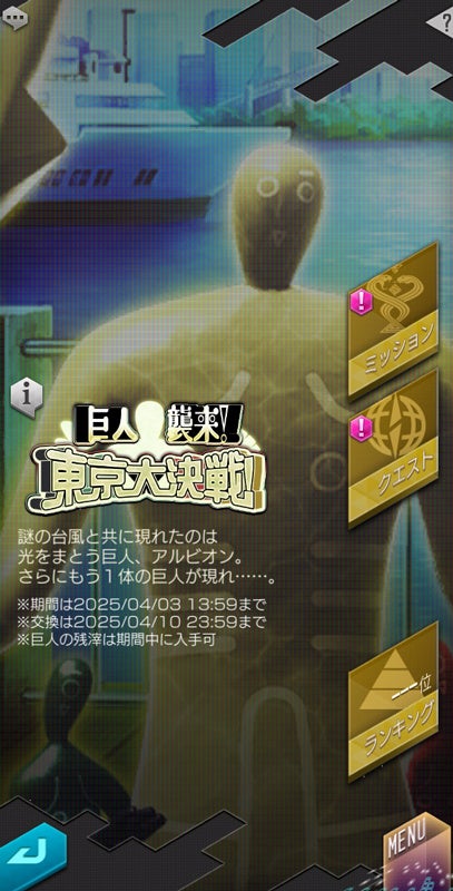 ※ランキングイベント“巨人襲来!東京大決戦!”の詳細は、ゲーム内お知らせをご確認ください。